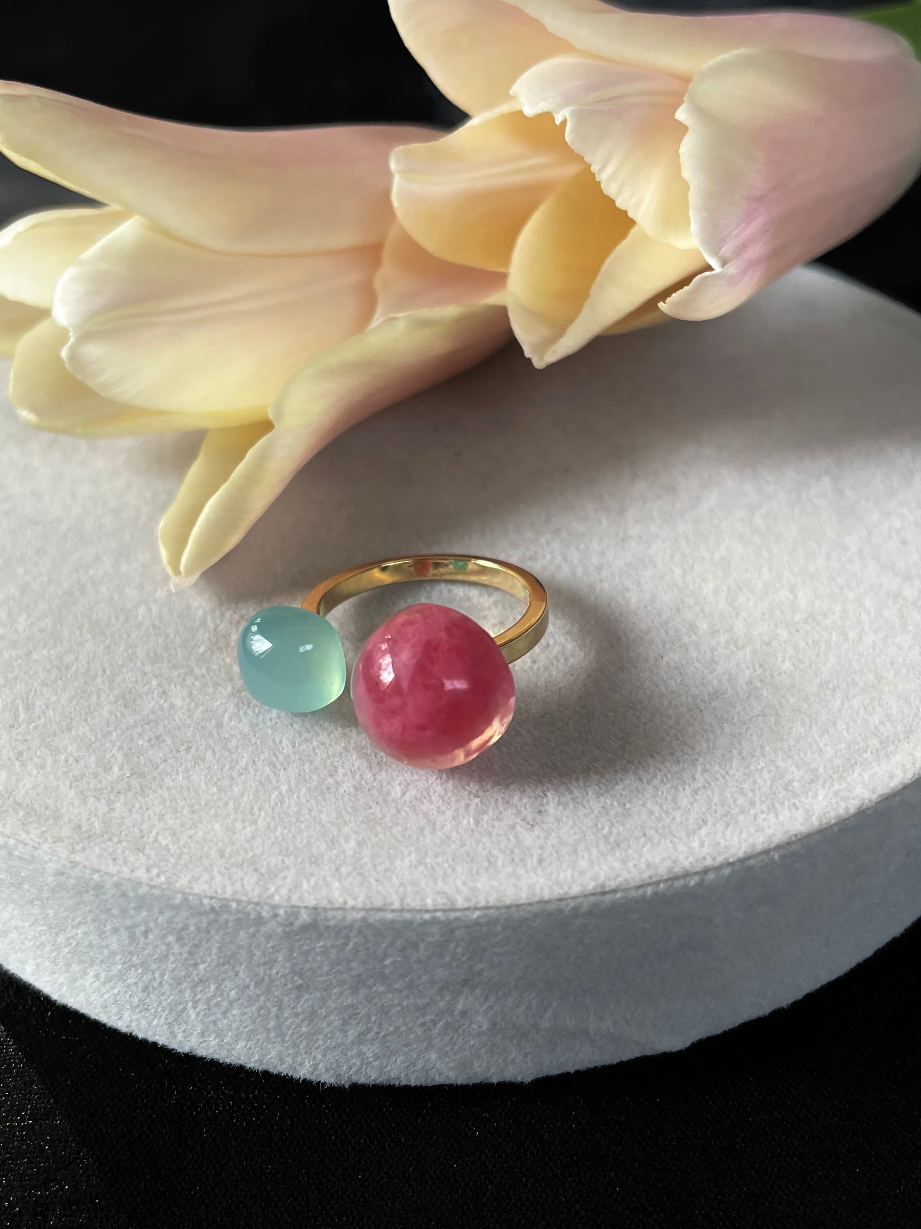 数量限定【ロシアからやって来た石】私だけの天然石フォークリング フリーサイズ 春色