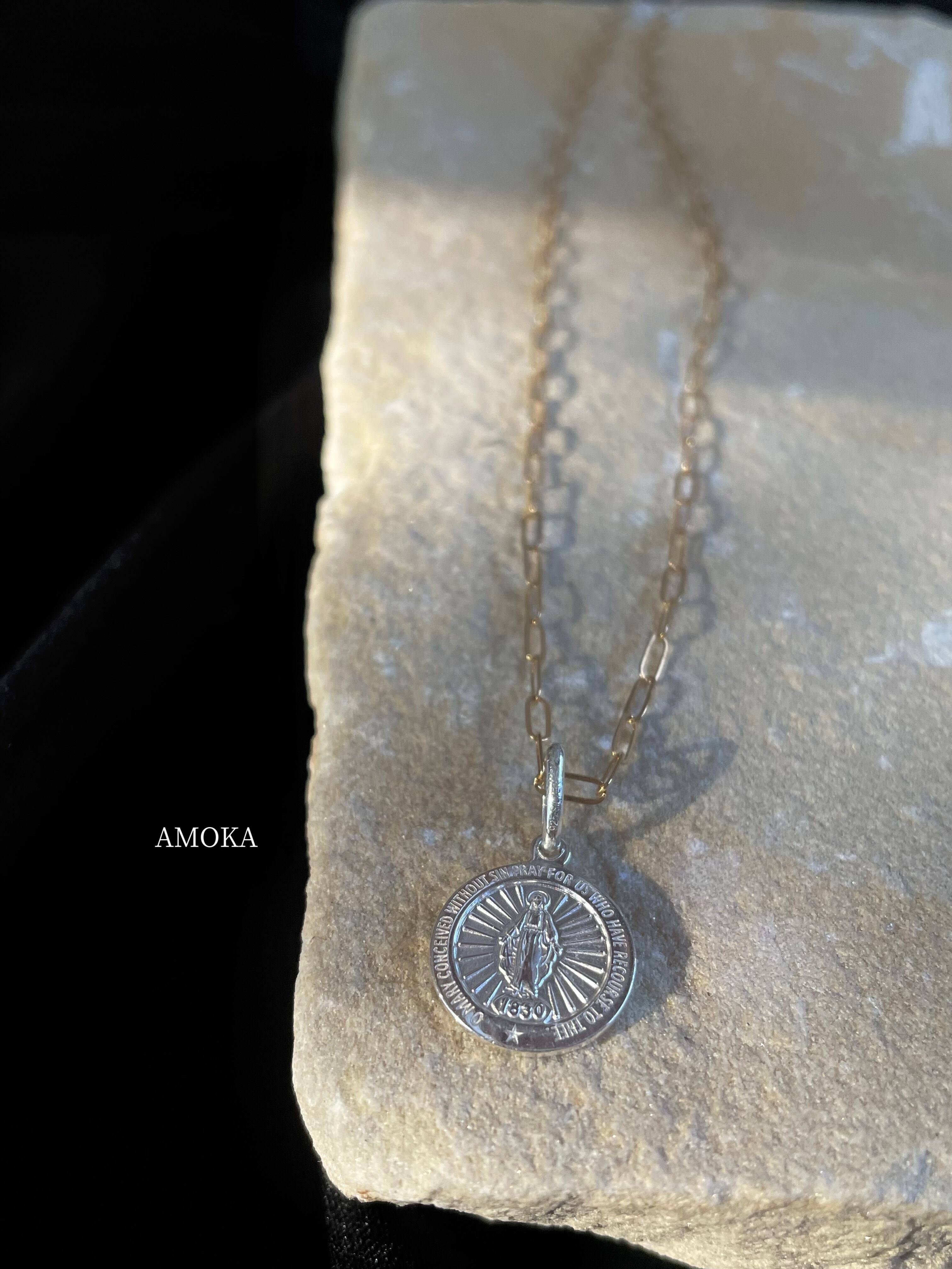 繊細で上品な14KGF(ゴールドフィルド)製のスクエアチェーンネックレスに、取り外し可能なsilver925コインチャームを組み合わせた、シンプルながらも印象的なネックレスをおつくりしました。