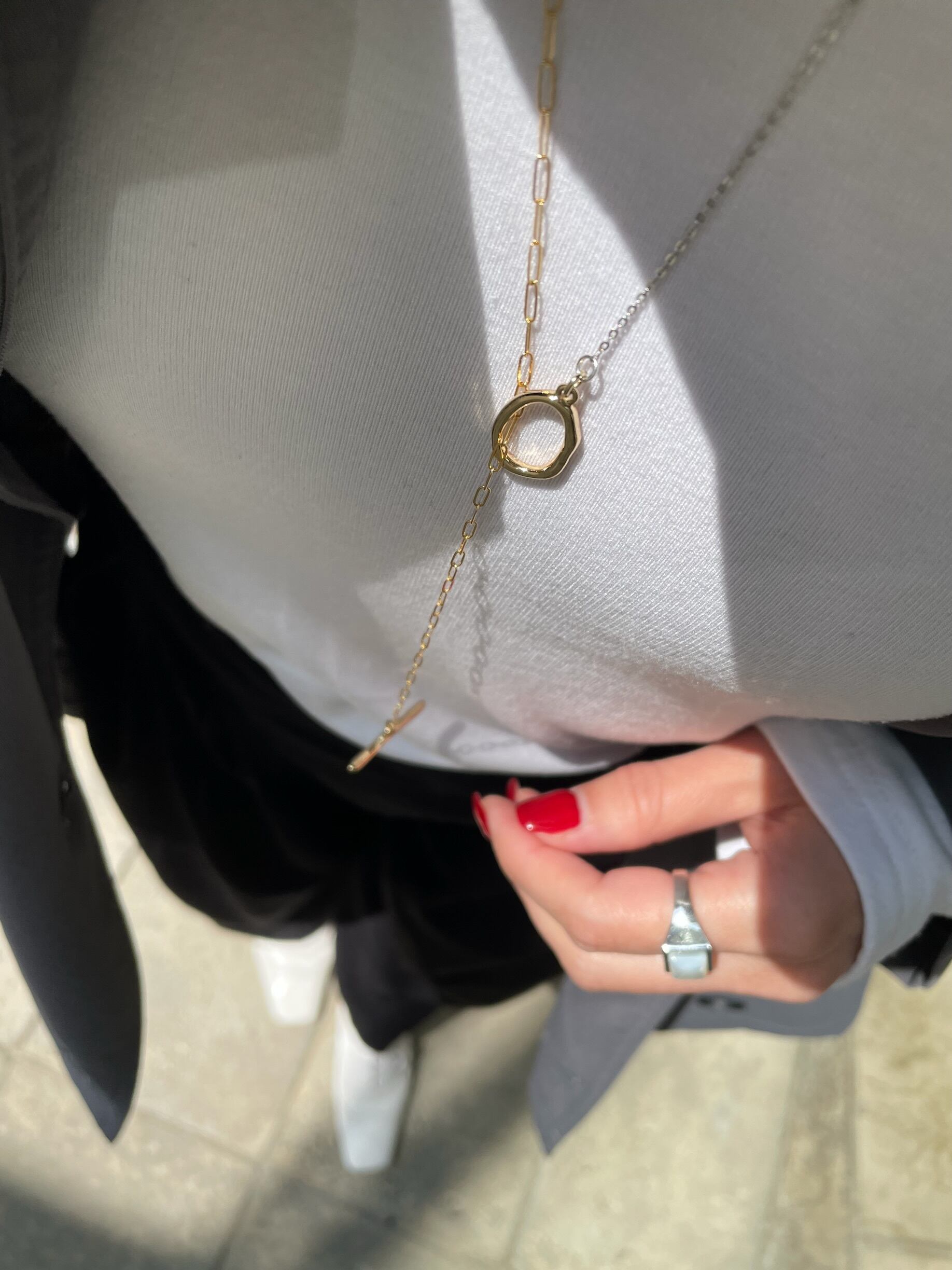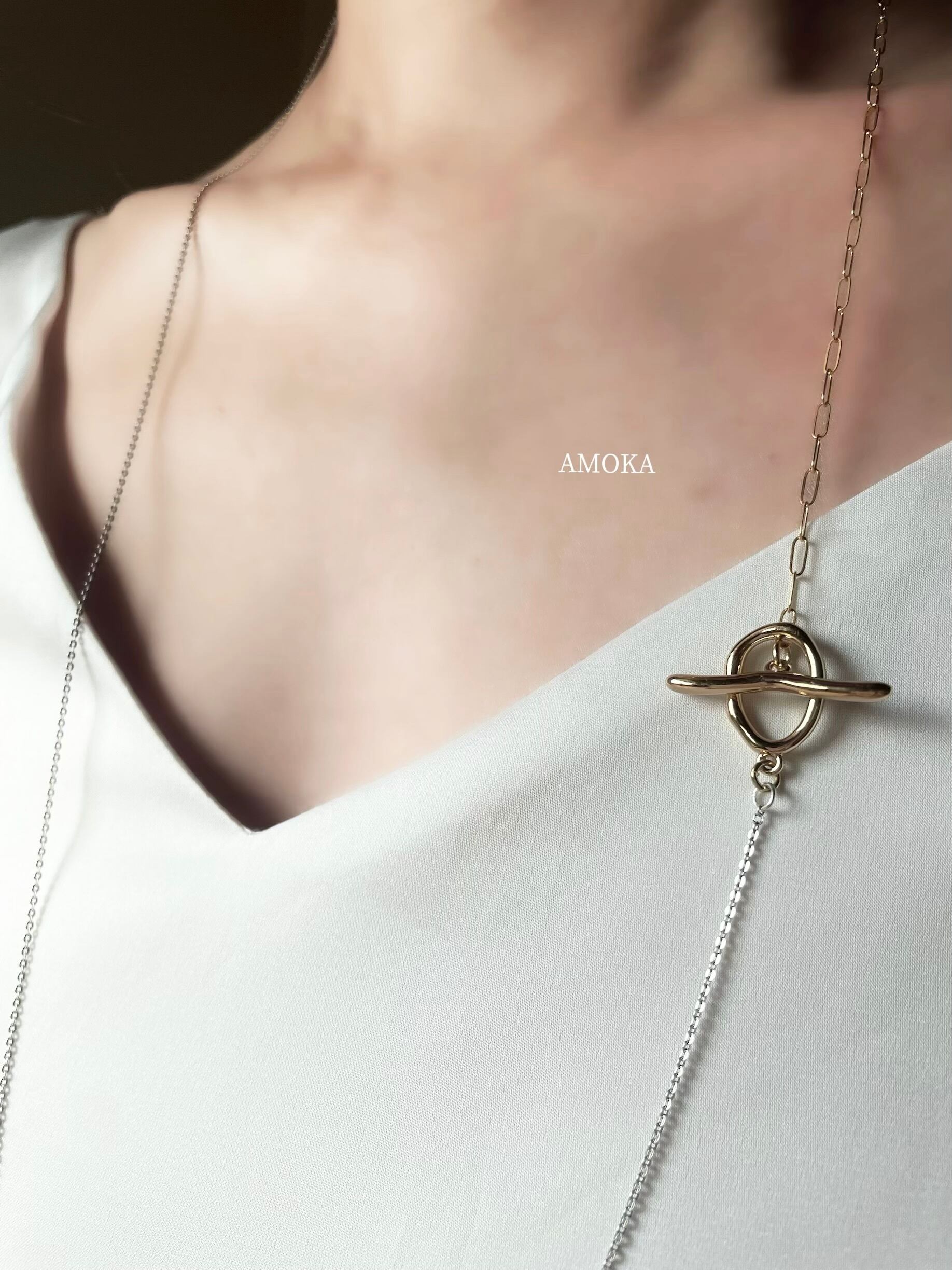 繊細な輝きを放つシルバー925に18Kゴールドコーティングを施したチェーンと、14kgf(ゴールドフィルド)チェーンをミックスした、こだわりの80cmラリエット。