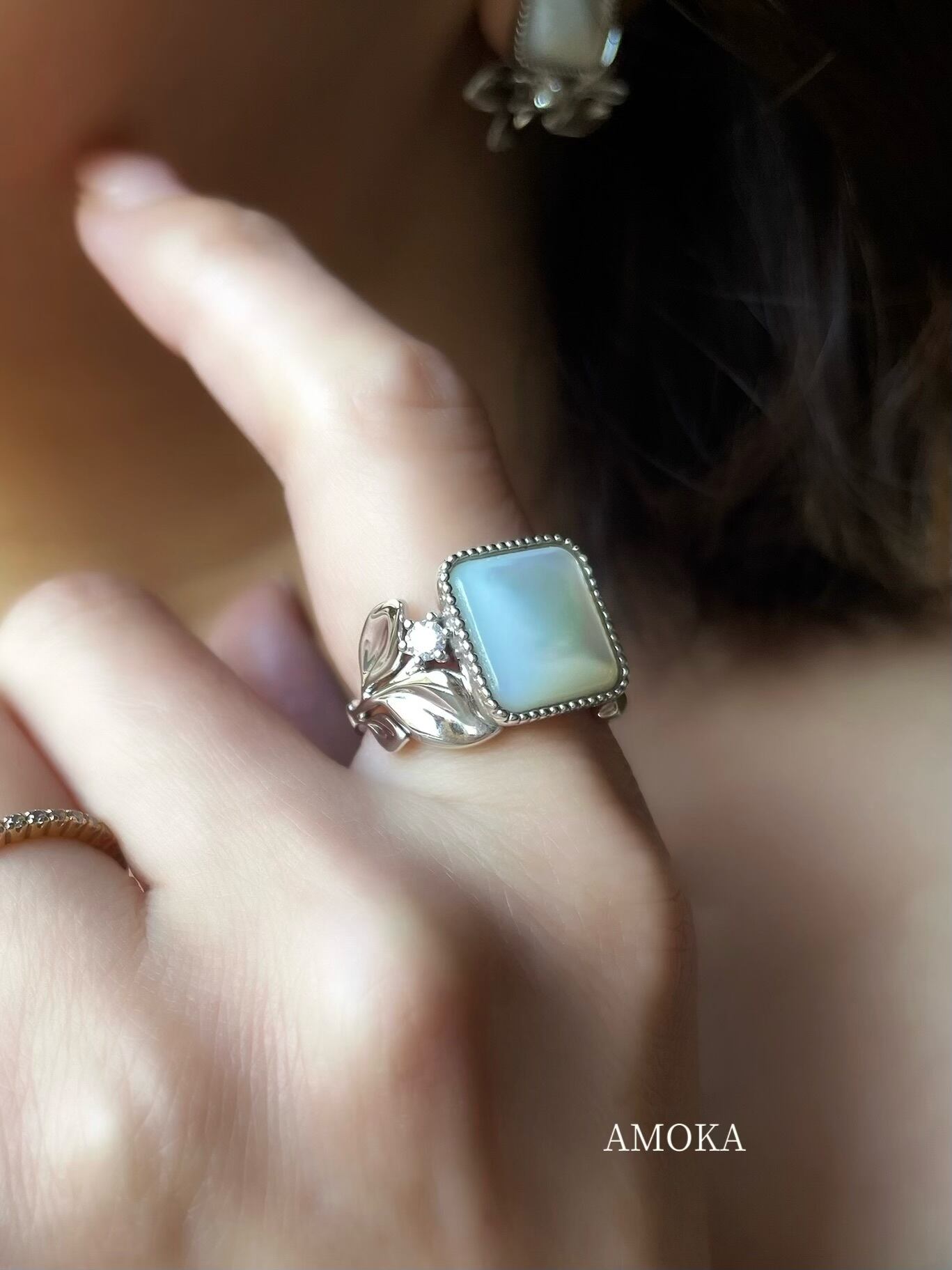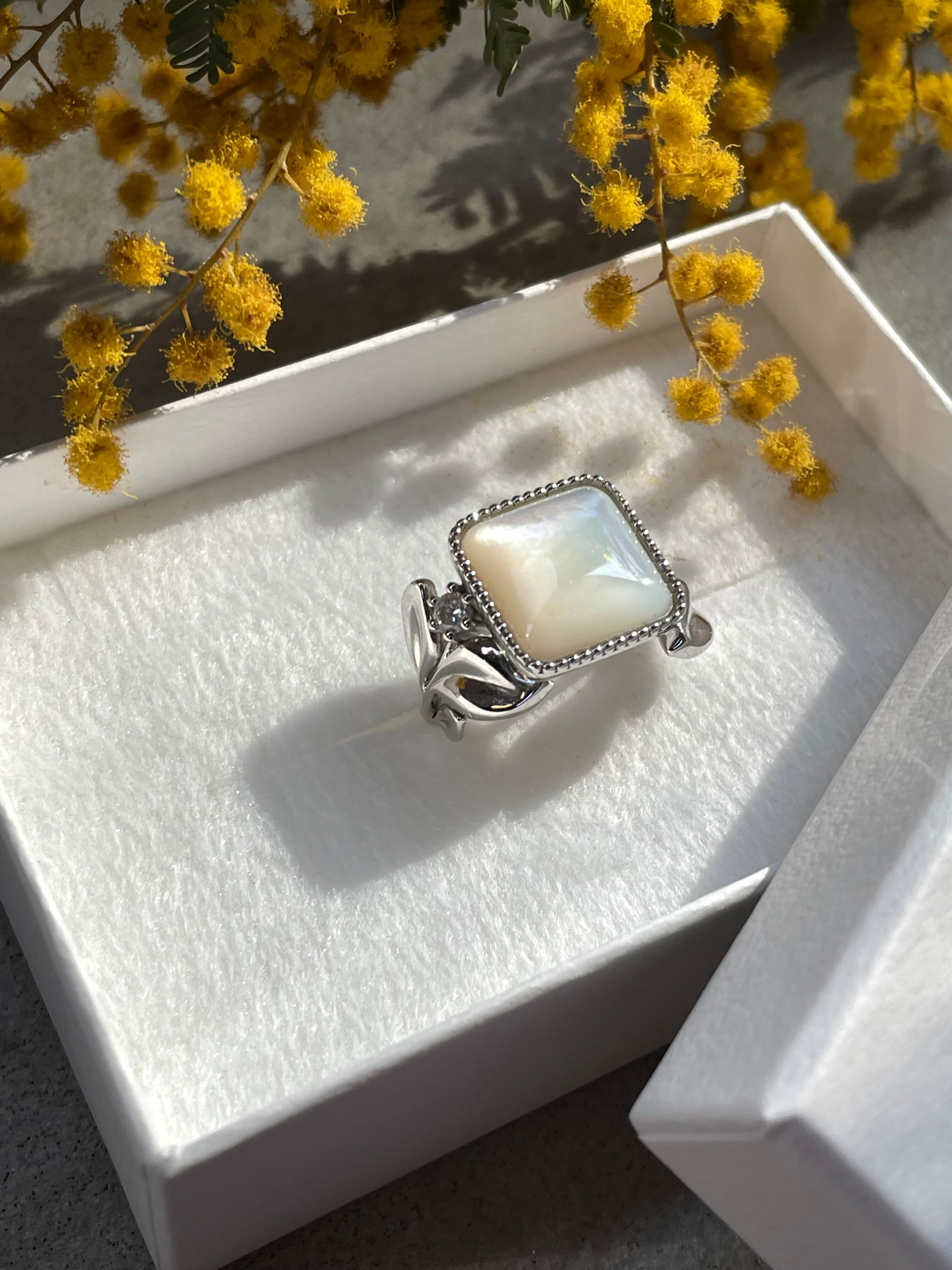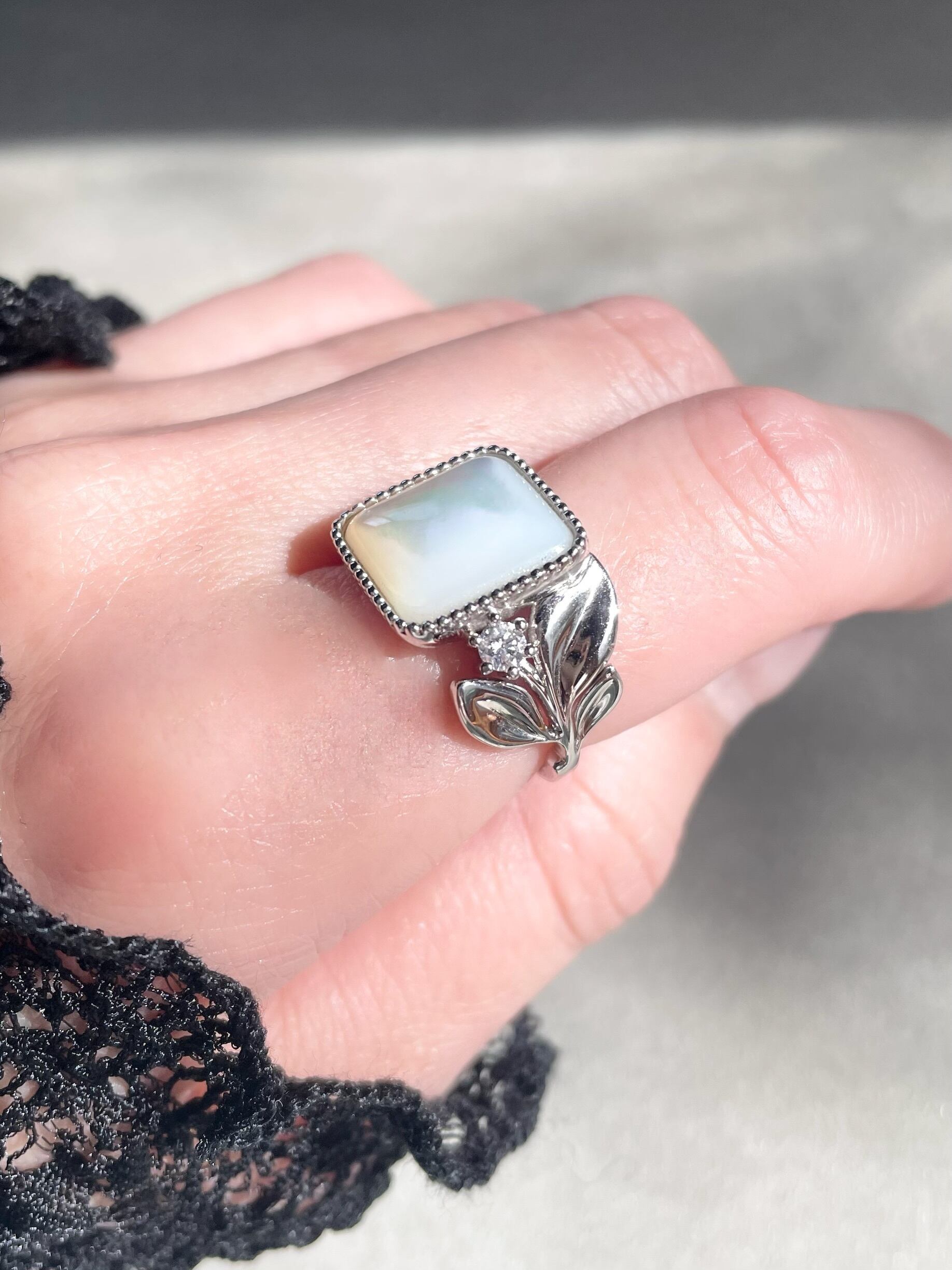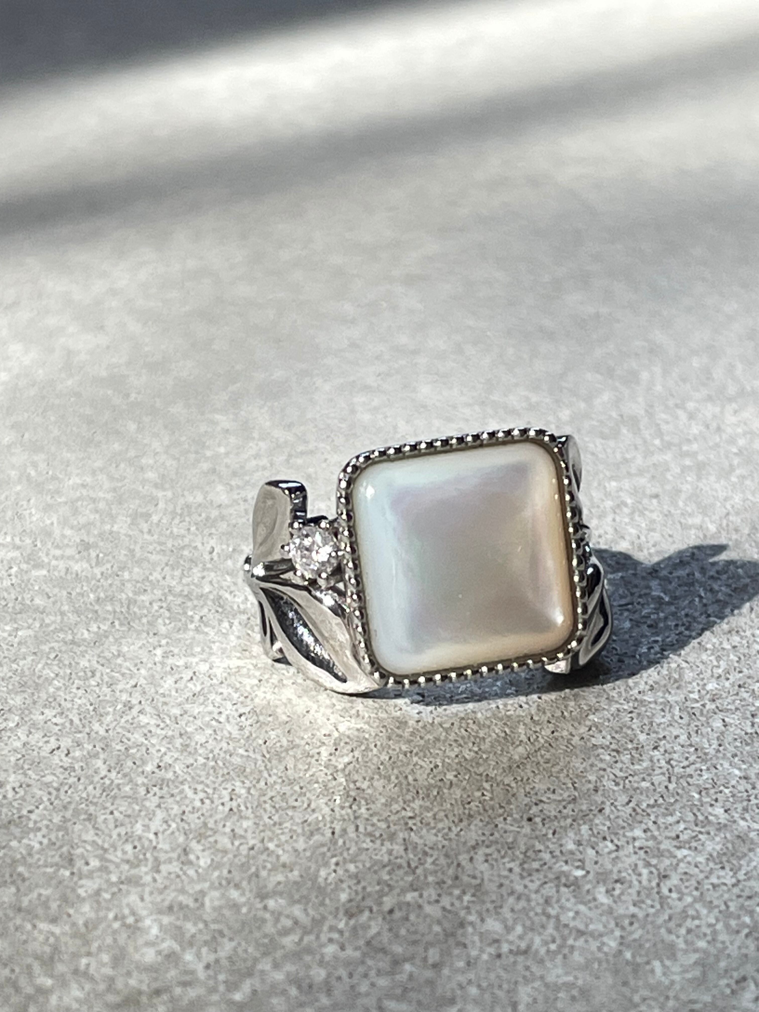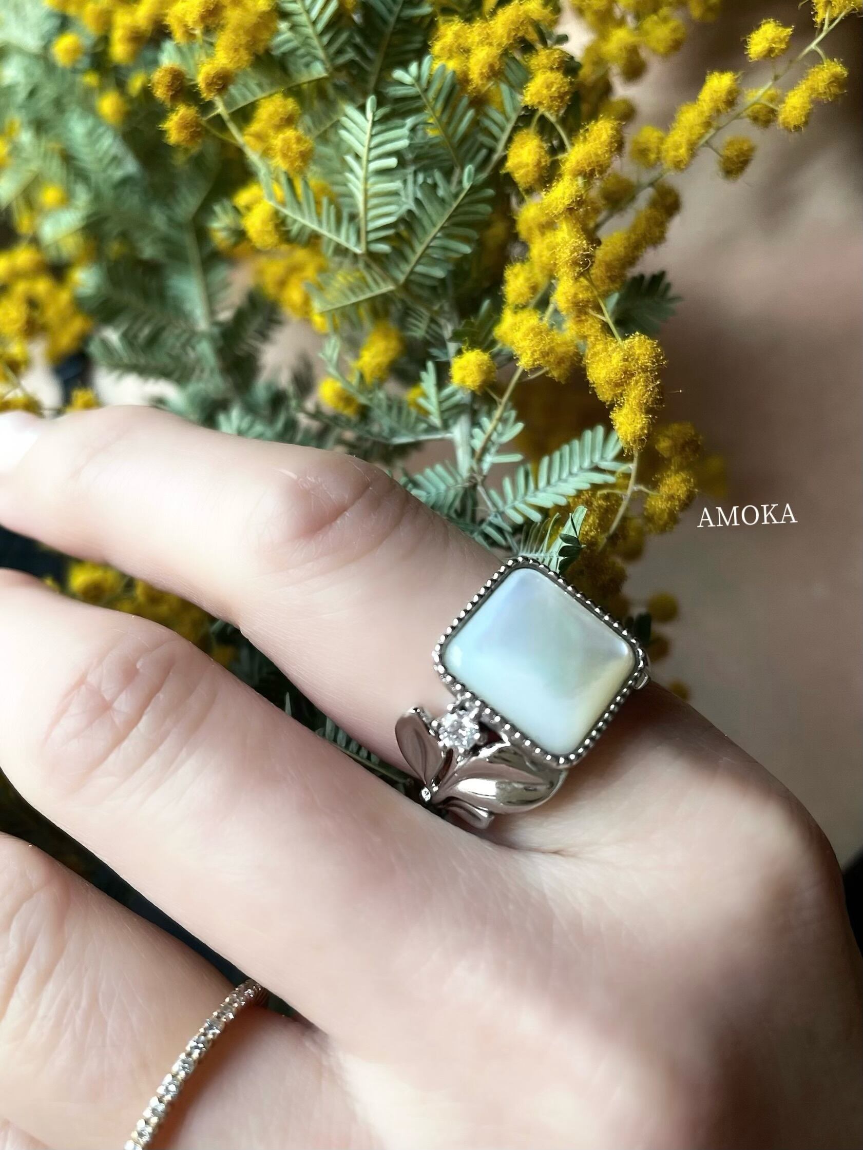 (大人のご褒美)Luminous Mother of Pearl & Diamond Eucalyptus Ring
