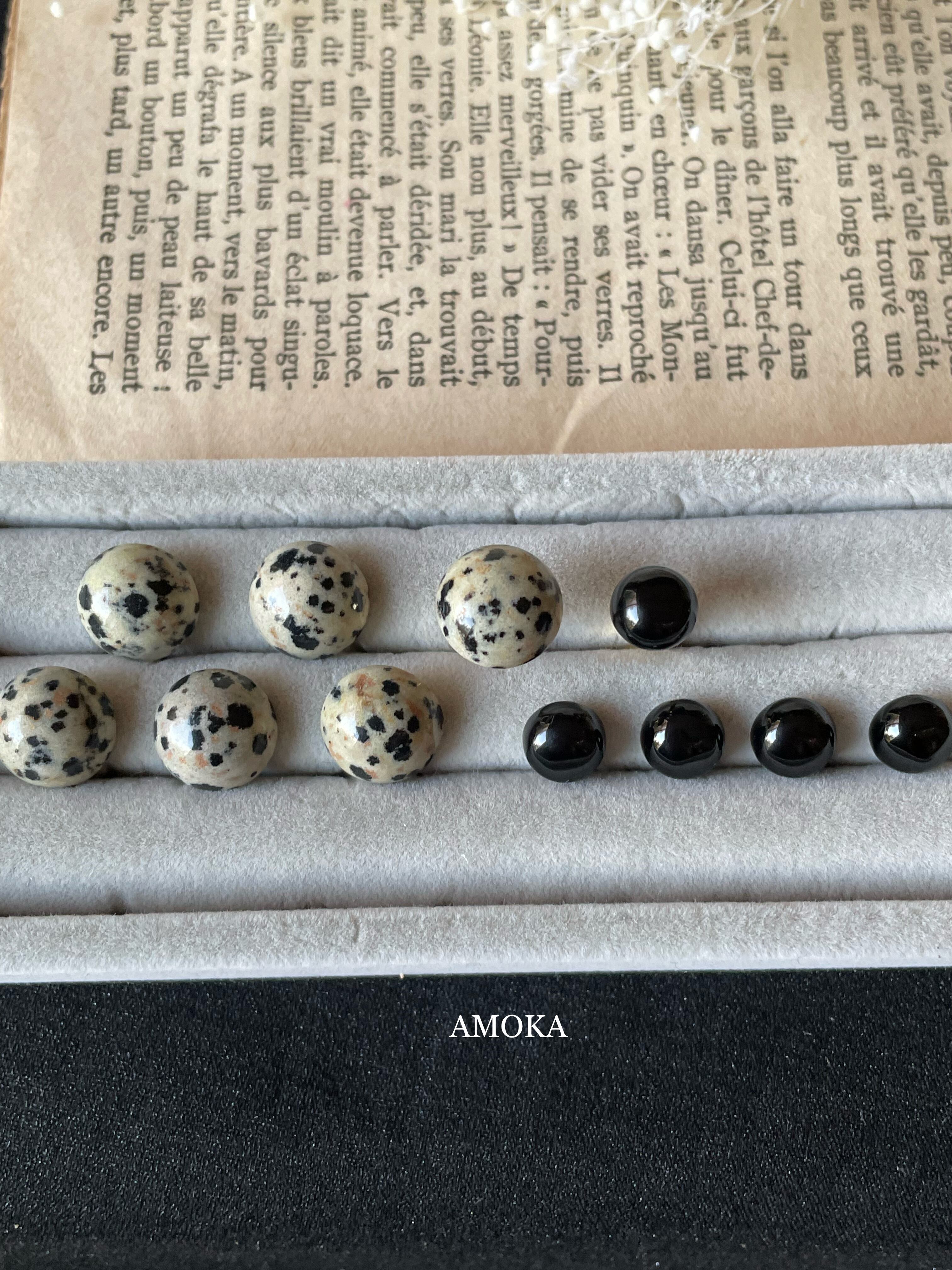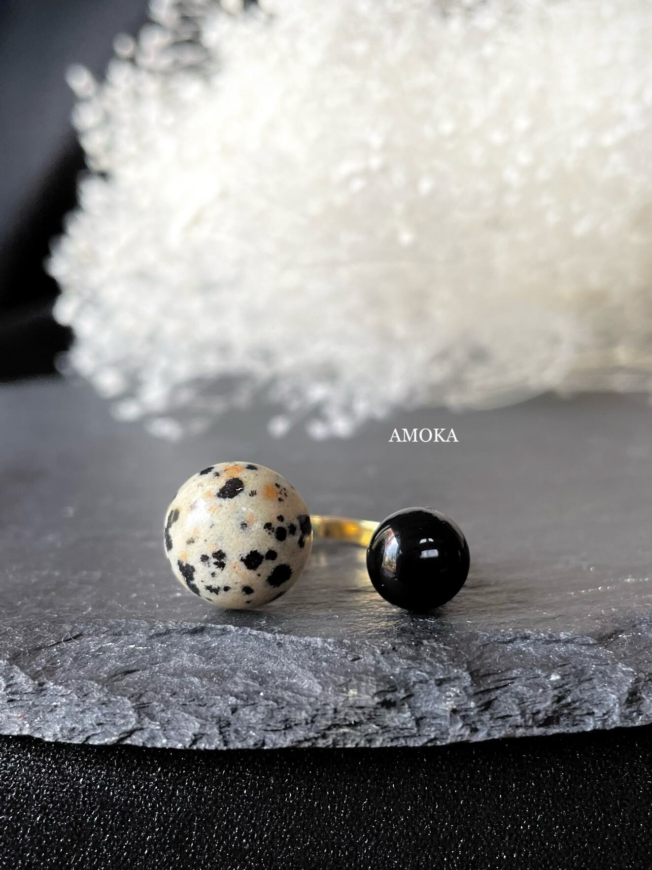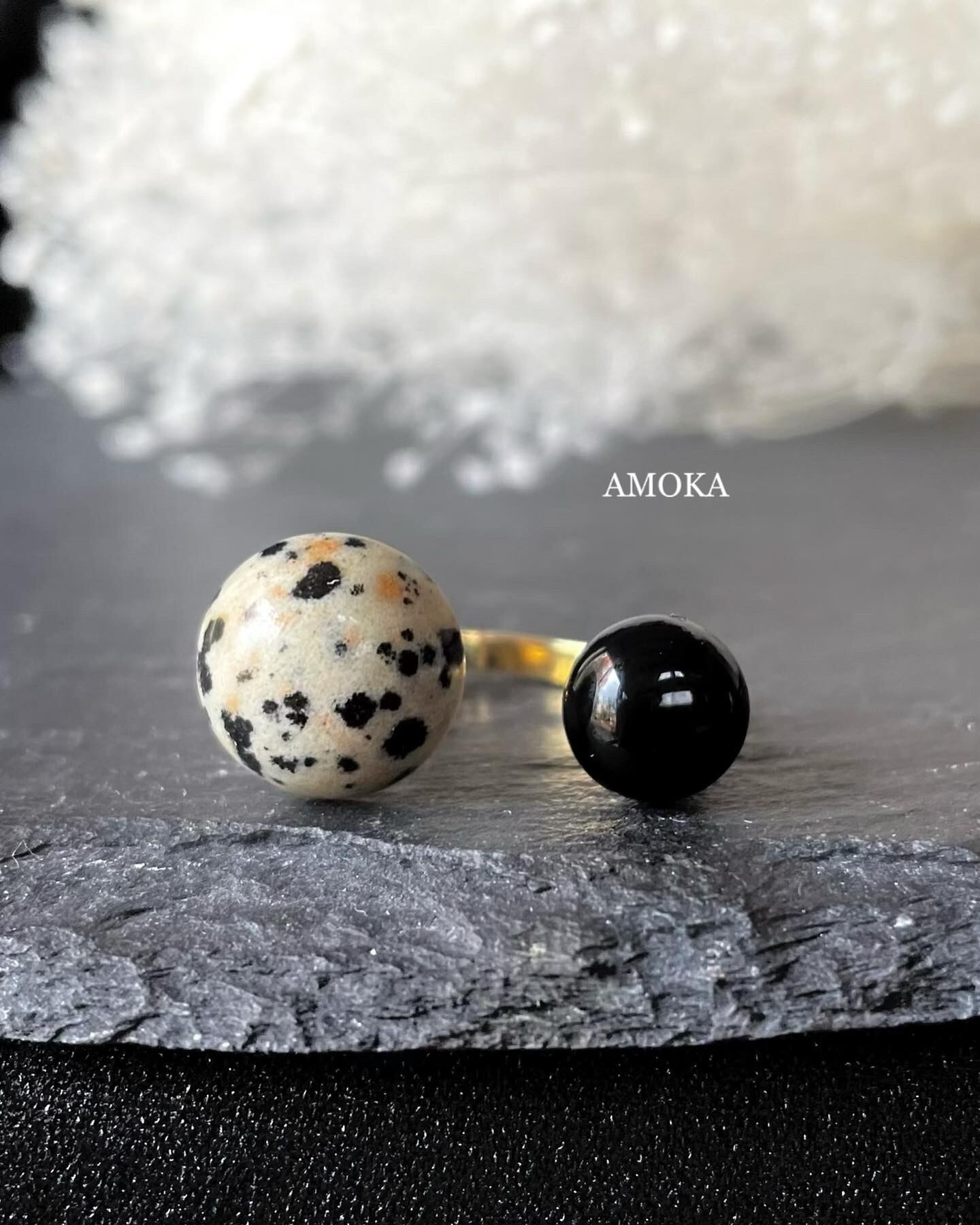 シックで大人可愛い、ダルメシアンジャスパー×ブラックオニキスのフォークリングをお作りしました。