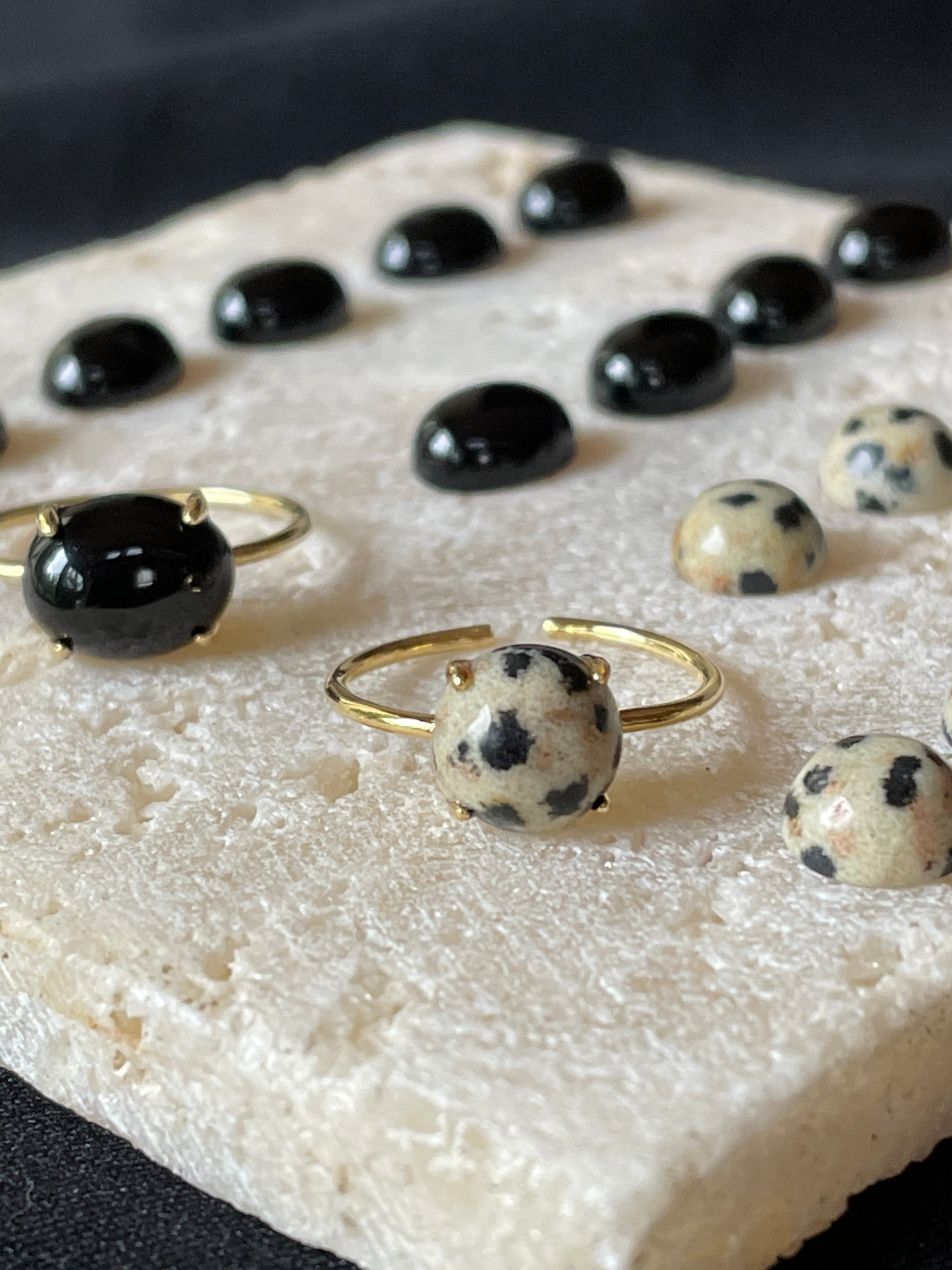 *ブラックオニキスリング、ダルメシアンジャスパーリングのサイズを備考欄にてお知らせください。