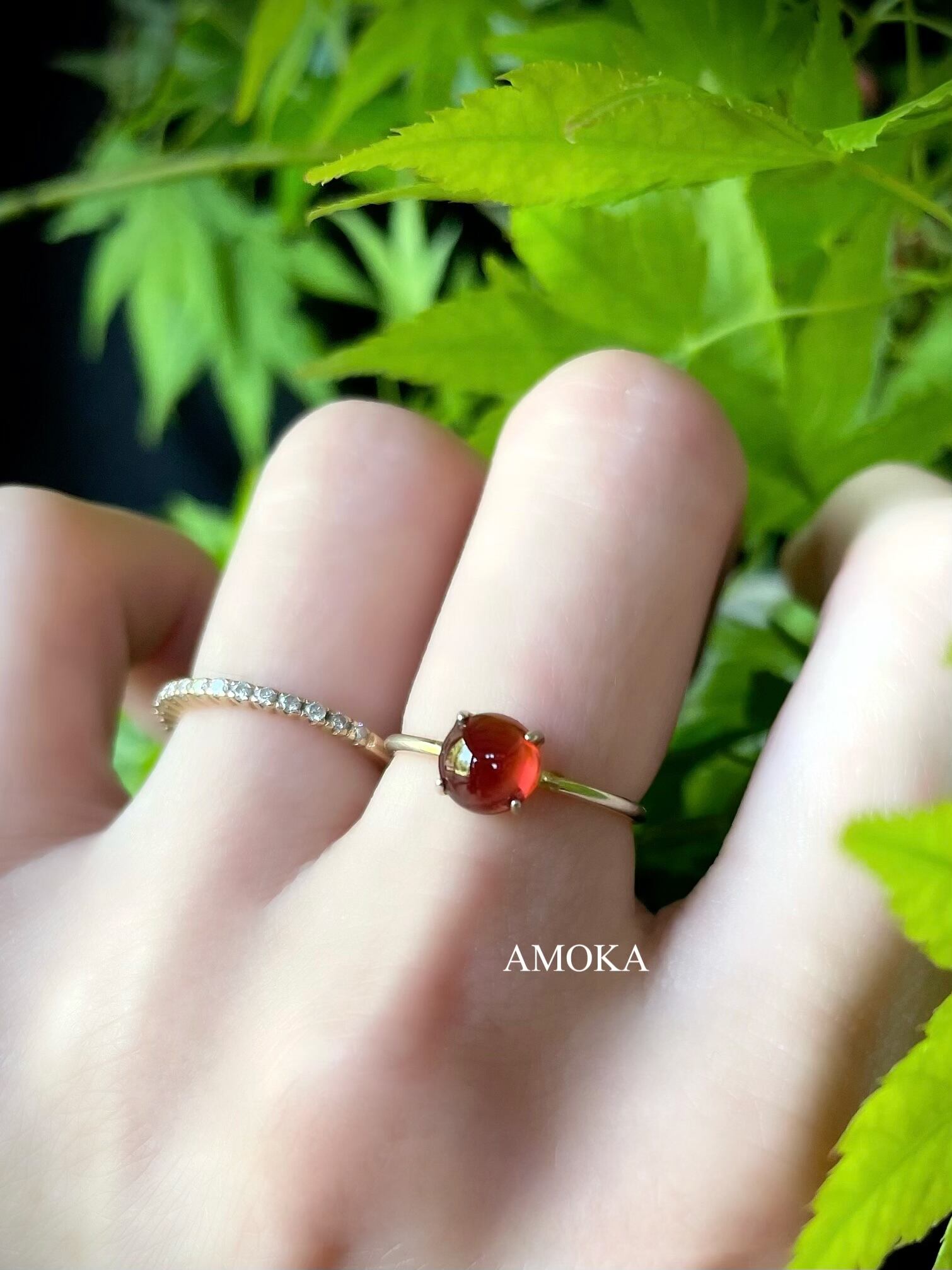 1月の誕生石、6ミリの小さめの【モザンビーク産ガーネット】ですが、一粒でも十分に存在感がありますので、様々な装いに合わせてお楽しみください。