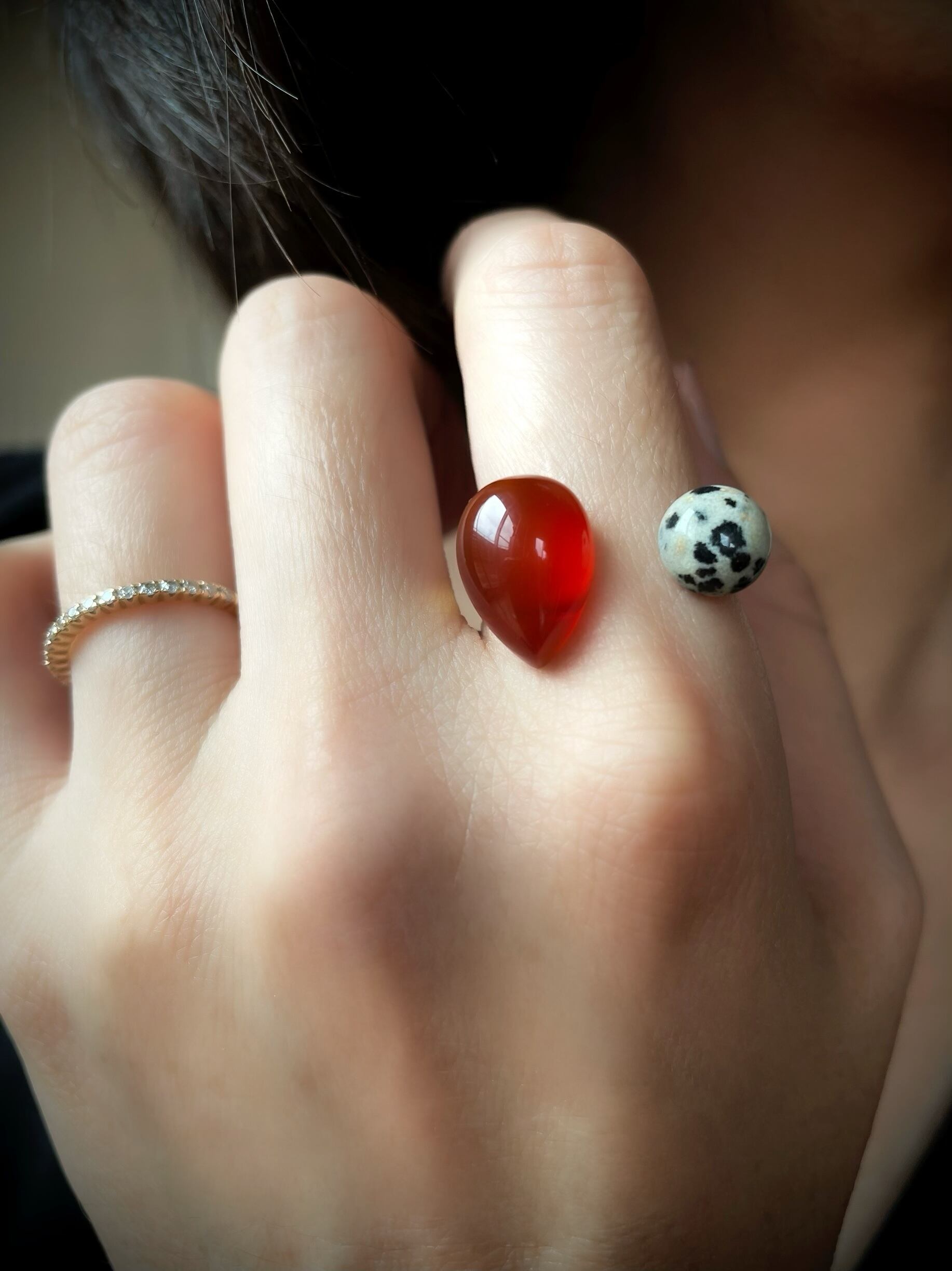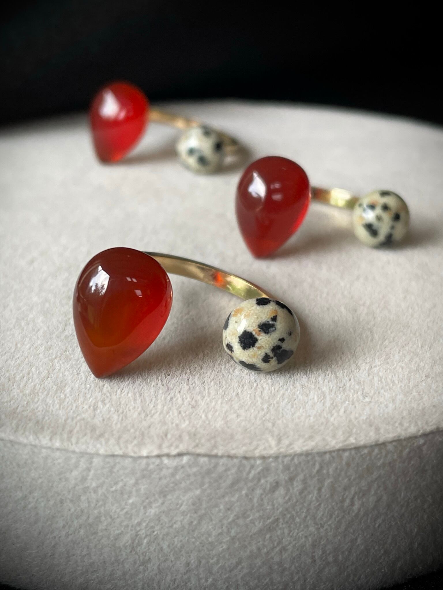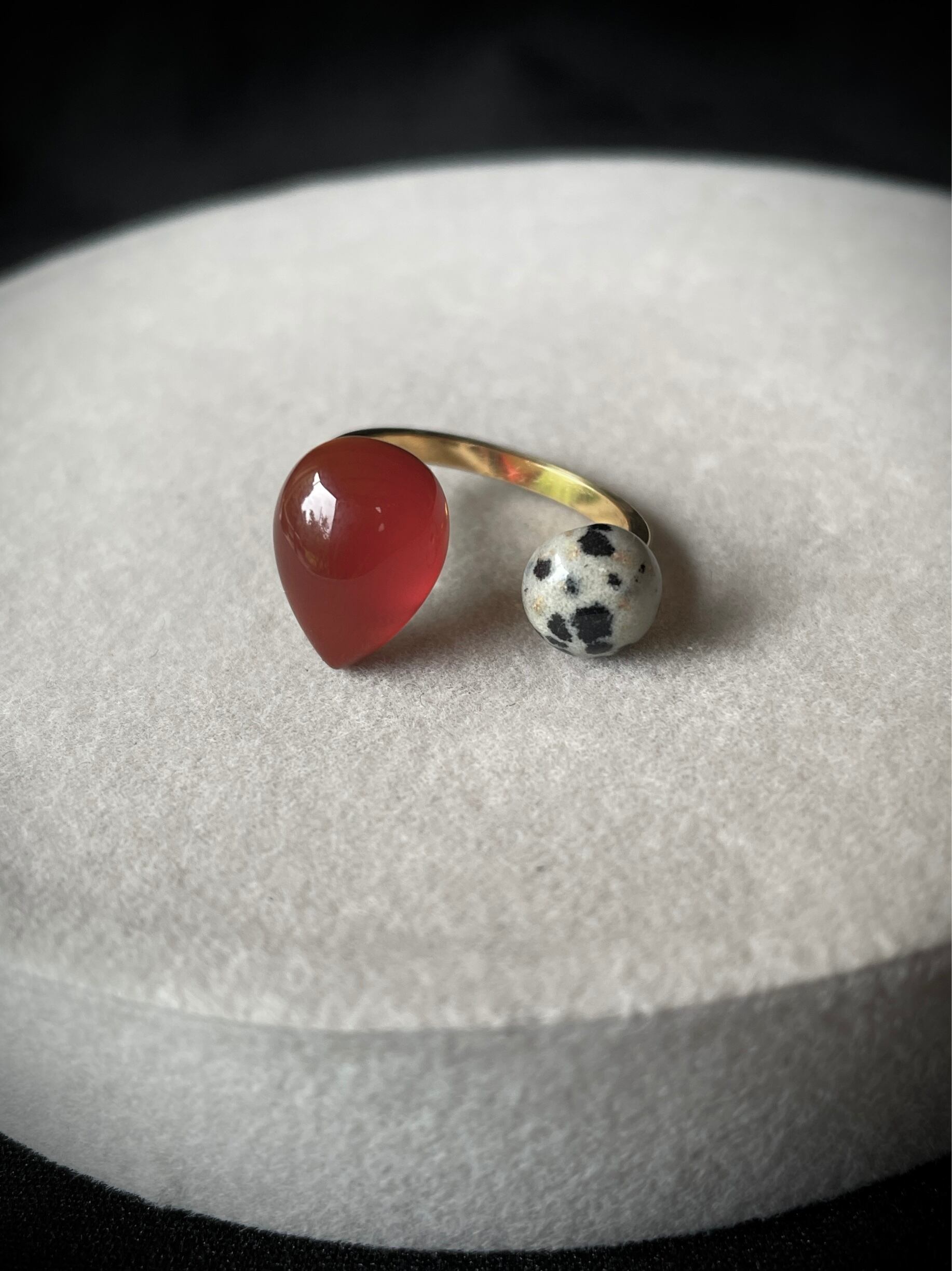【個性豊かな】ダルメシアンジャスパー×【艶やかな】AAAレッドアゲートのフォークリングをお作りしました。