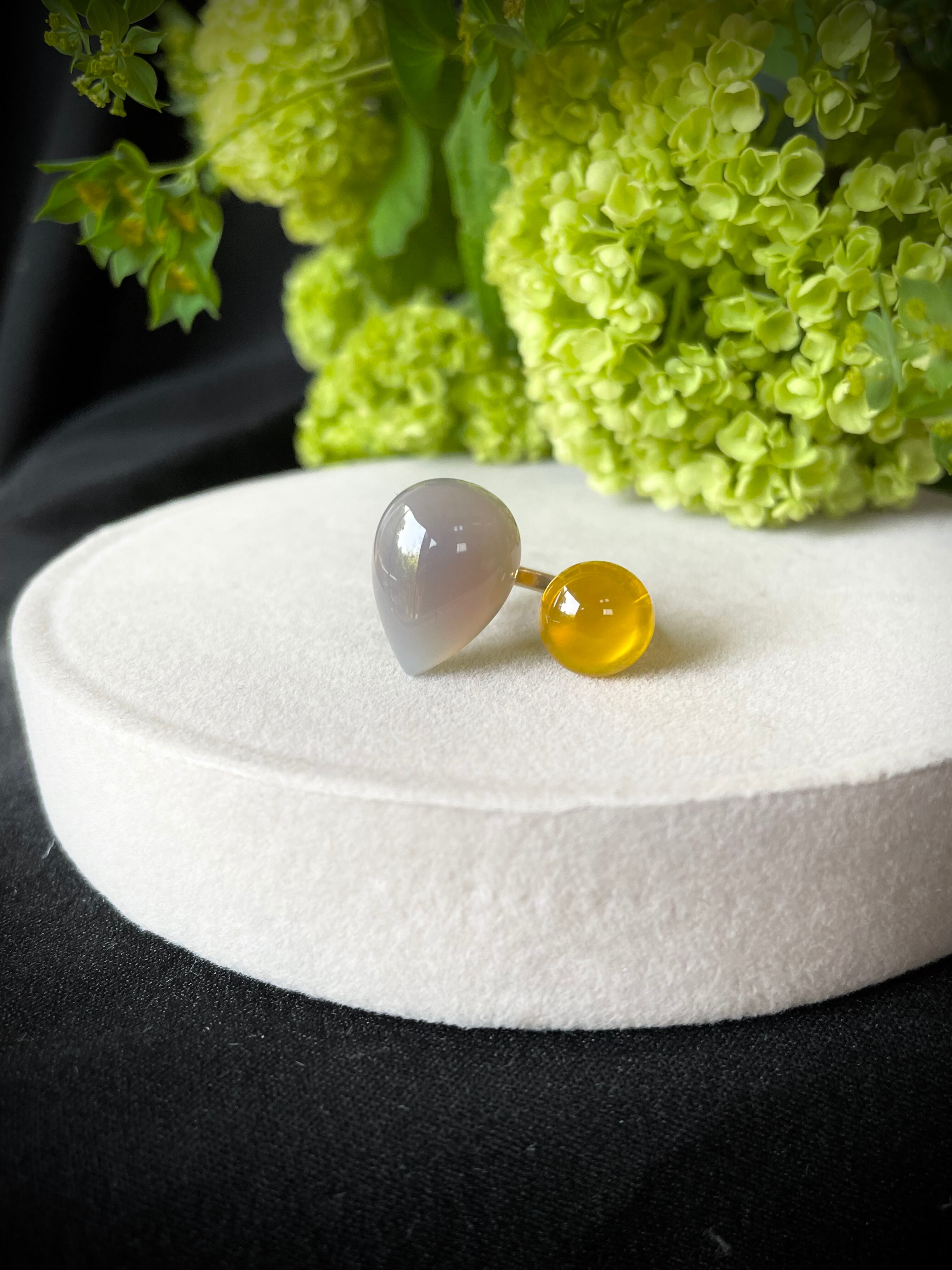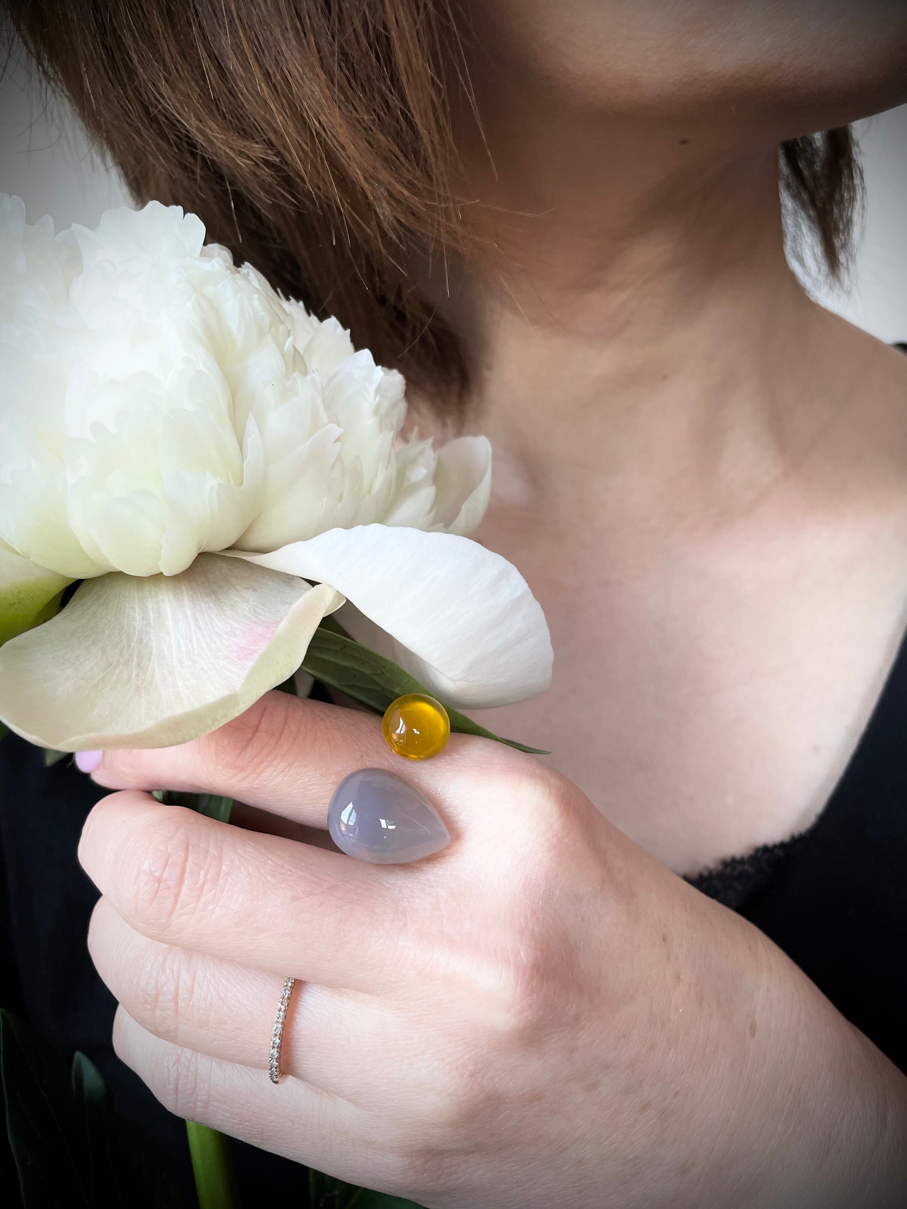 イエローアゲート(染め)の元気なビタミンカラーとシックで大人な雰囲気のグレーオニキスと合わせる事で、互いの明るさ×クールさを引き立て合い、【明るくて、大人な私】を表現してくれます。