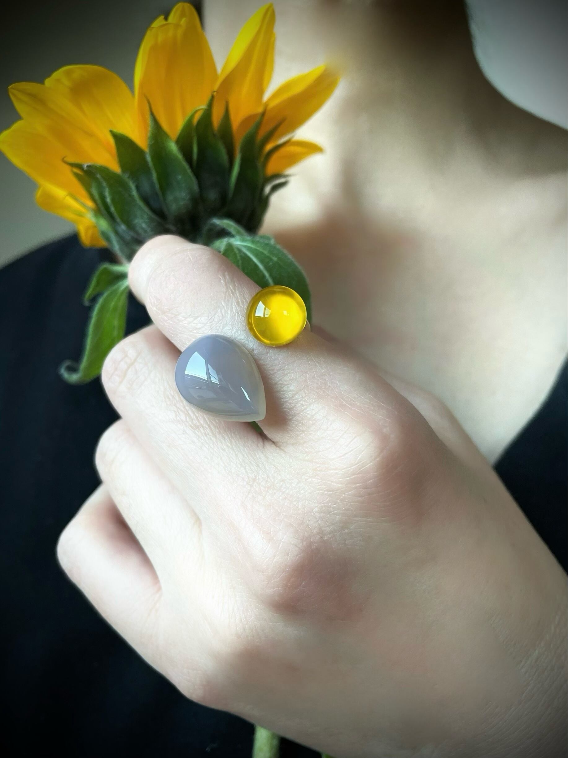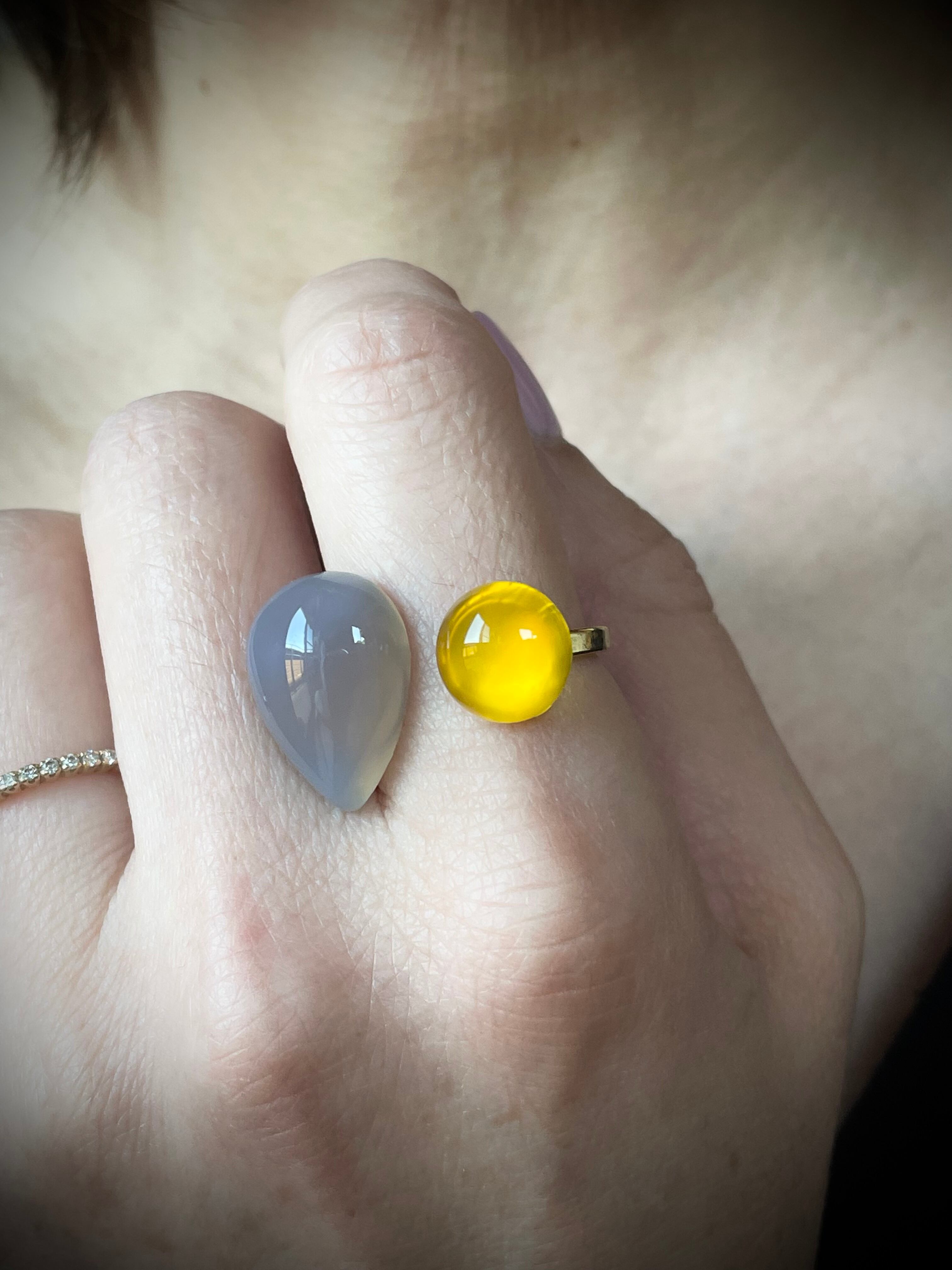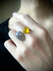 黄色×グレーのコーディネートが目を引く大人可愛いフォークリングをお作りしました。 お洒落さんの大好きな黄色×グレーはまさに愛されリングではないでしょうか。