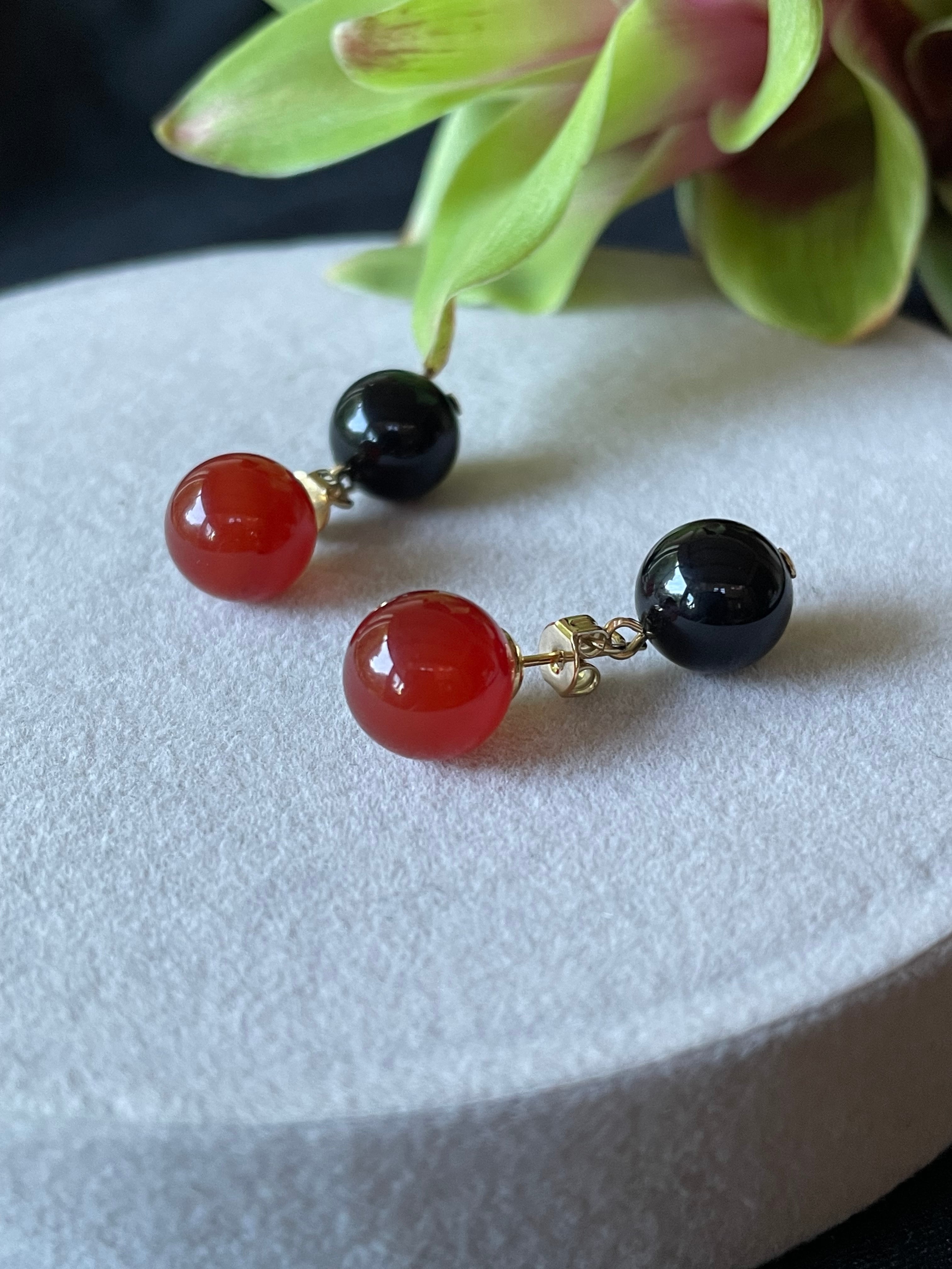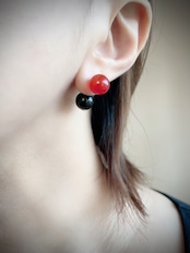 10ミリの愛らしく可愛い、レッドアゲート×シックで大人可愛いブラックオニキスのピアスです。