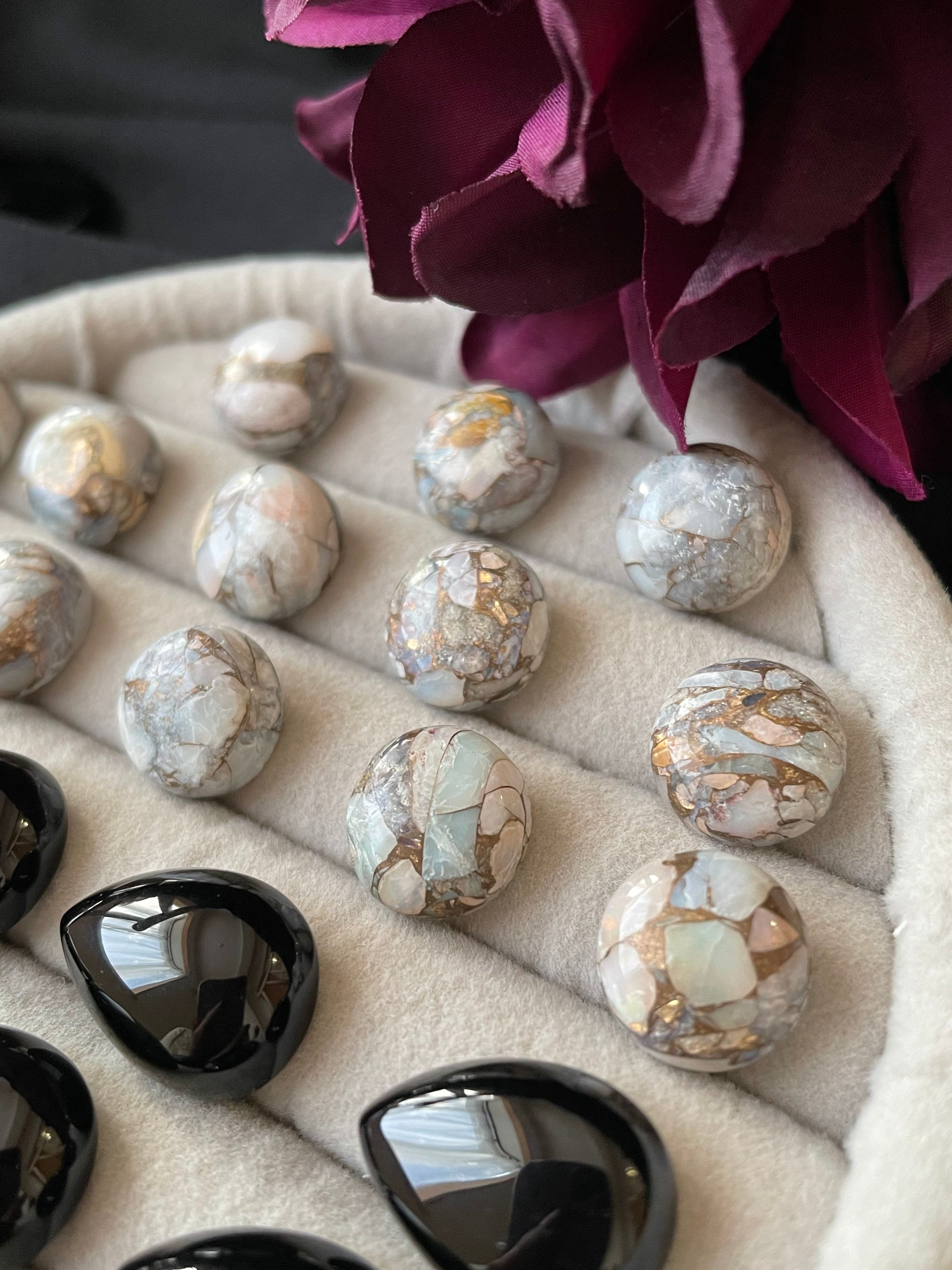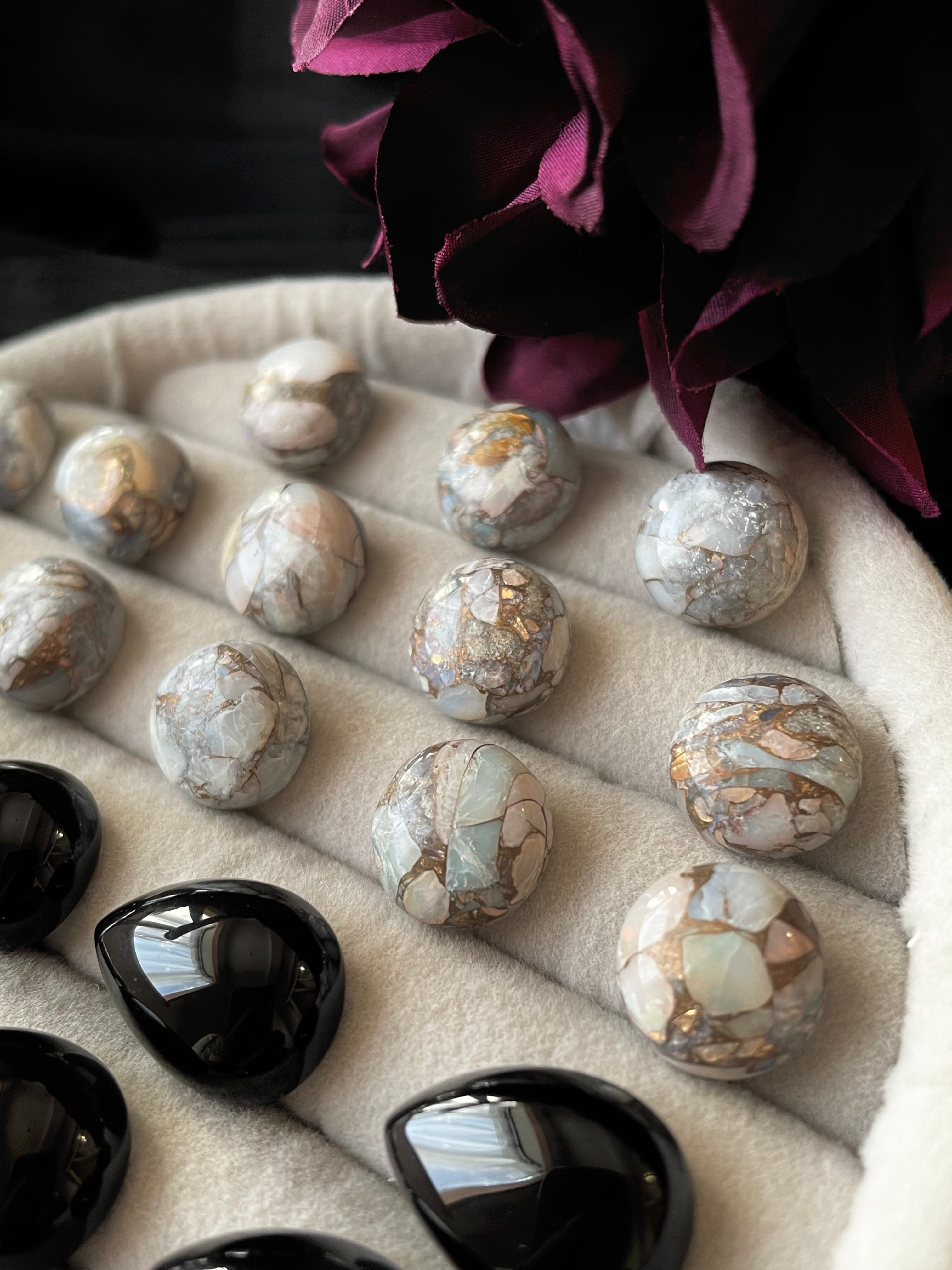 コッパーオパールの一つ一つの模様は世界でただ一つ。その個性をご縁としてお迎えいただけたら大変嬉しく思います。