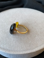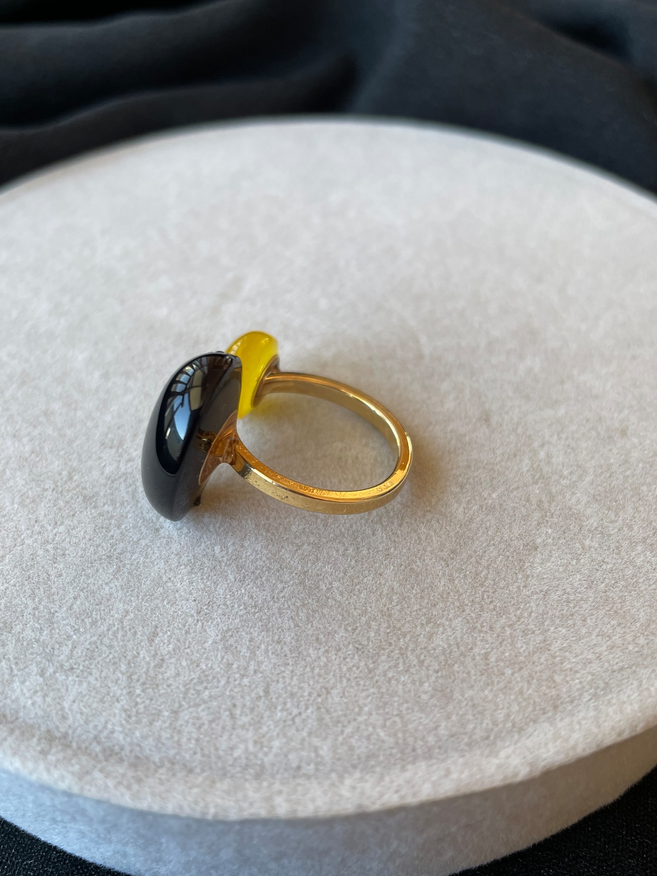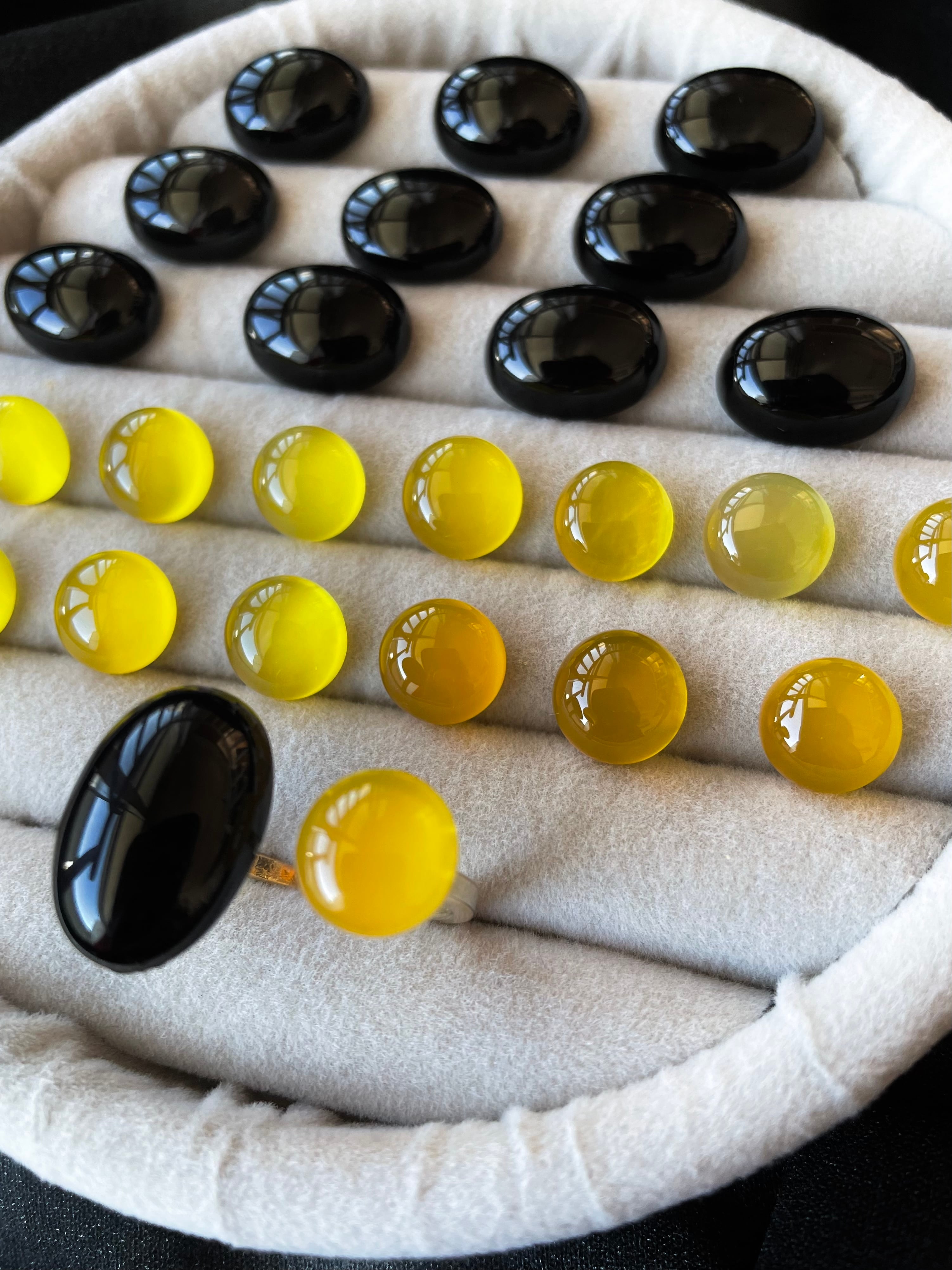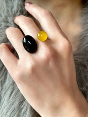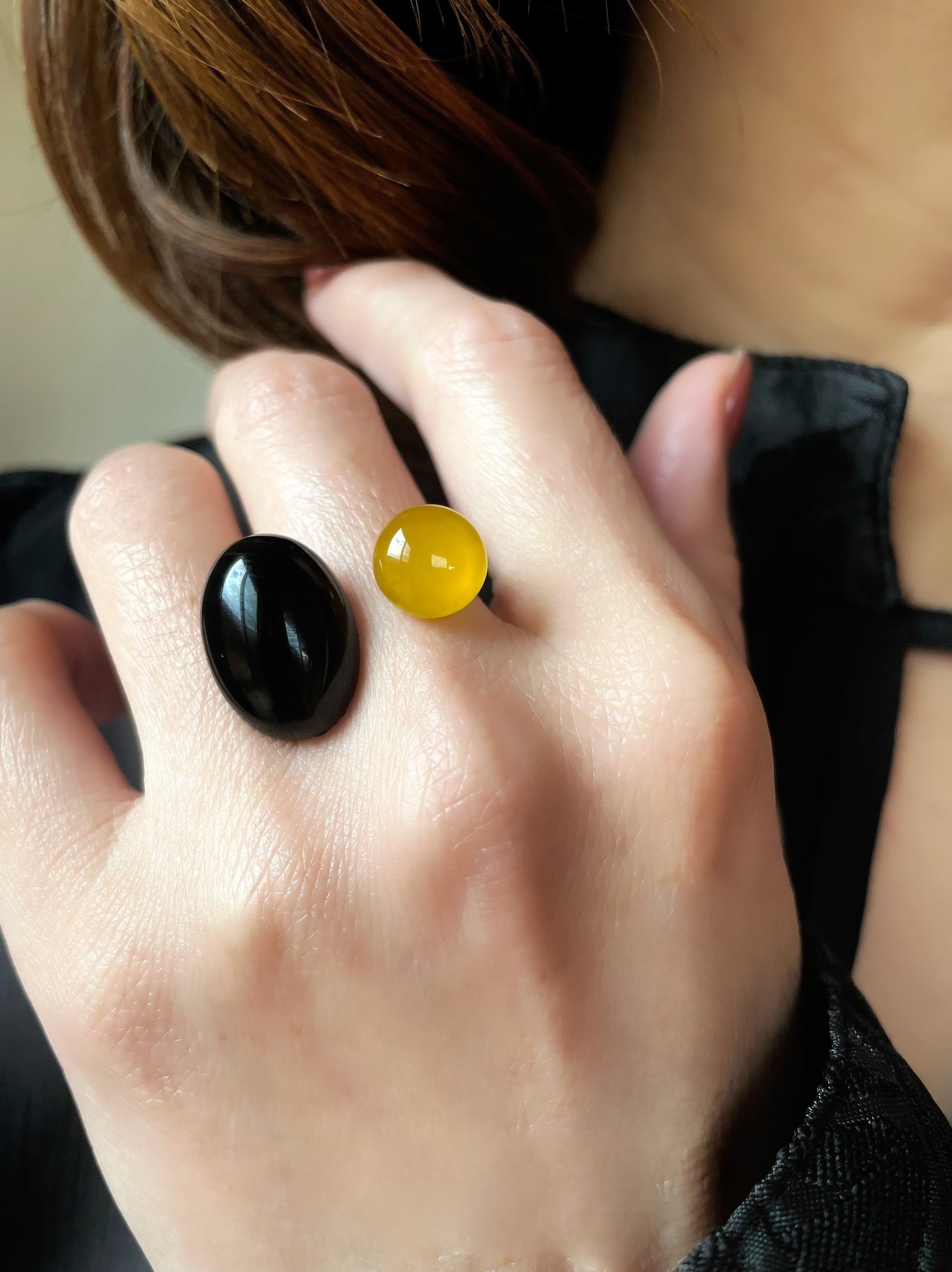 ブラックオニキスとイエローアゲートのフォークリングをお作りしました。