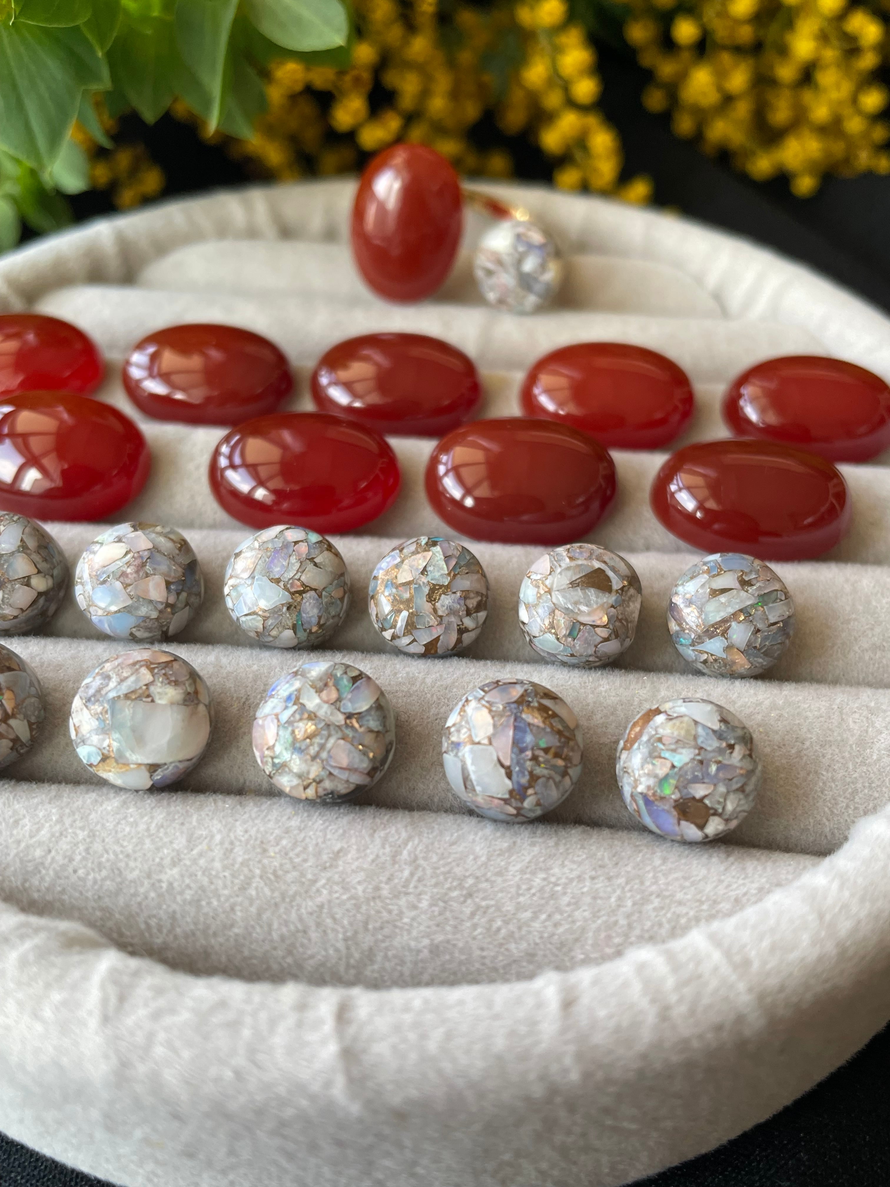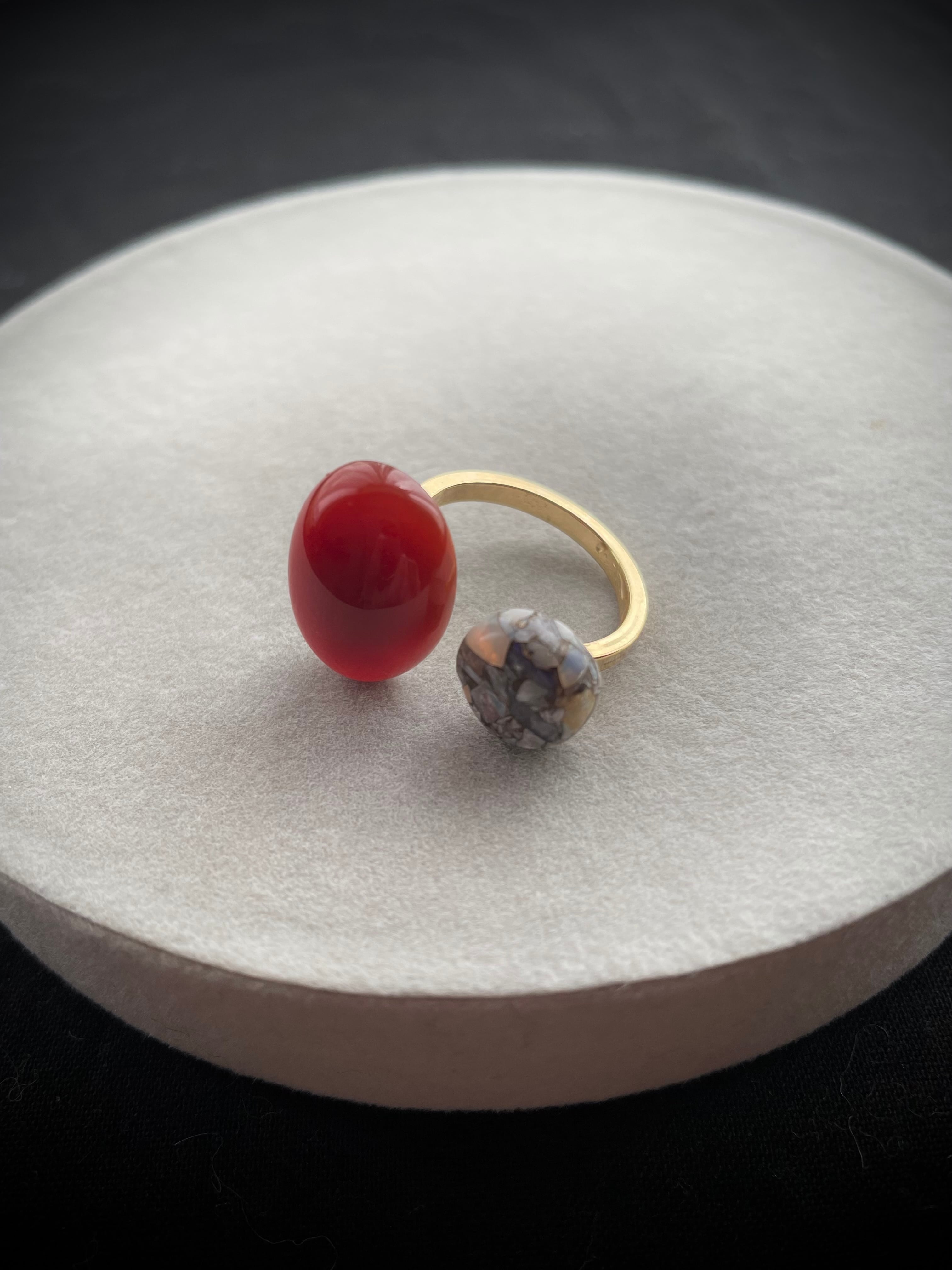 レッドアゲート×コッパーオパールのフォークリングをお作りしました。