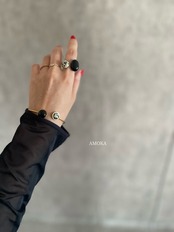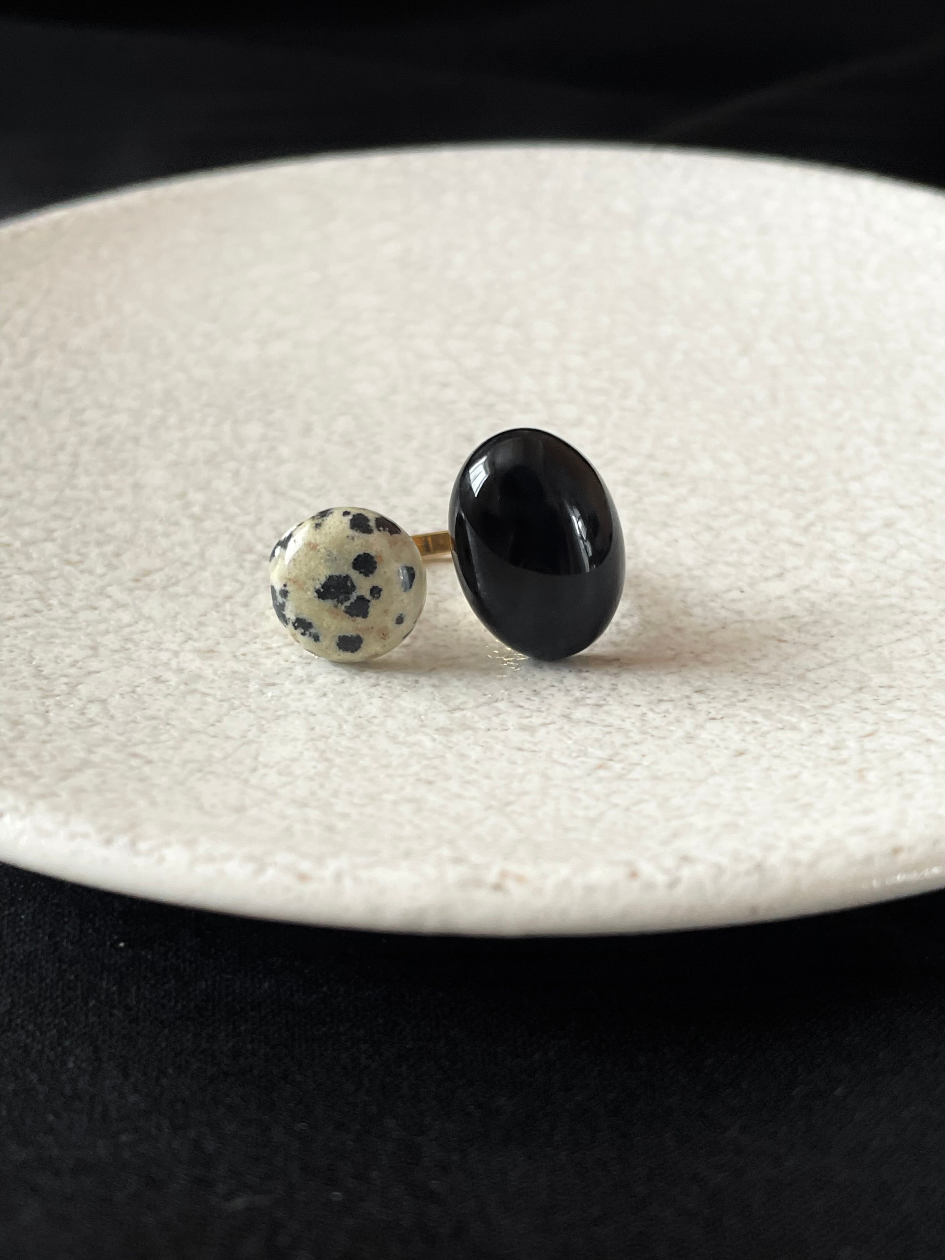 ブラックオニキス×ダルメシアンジャスパーのフォークリングをお作りしました。