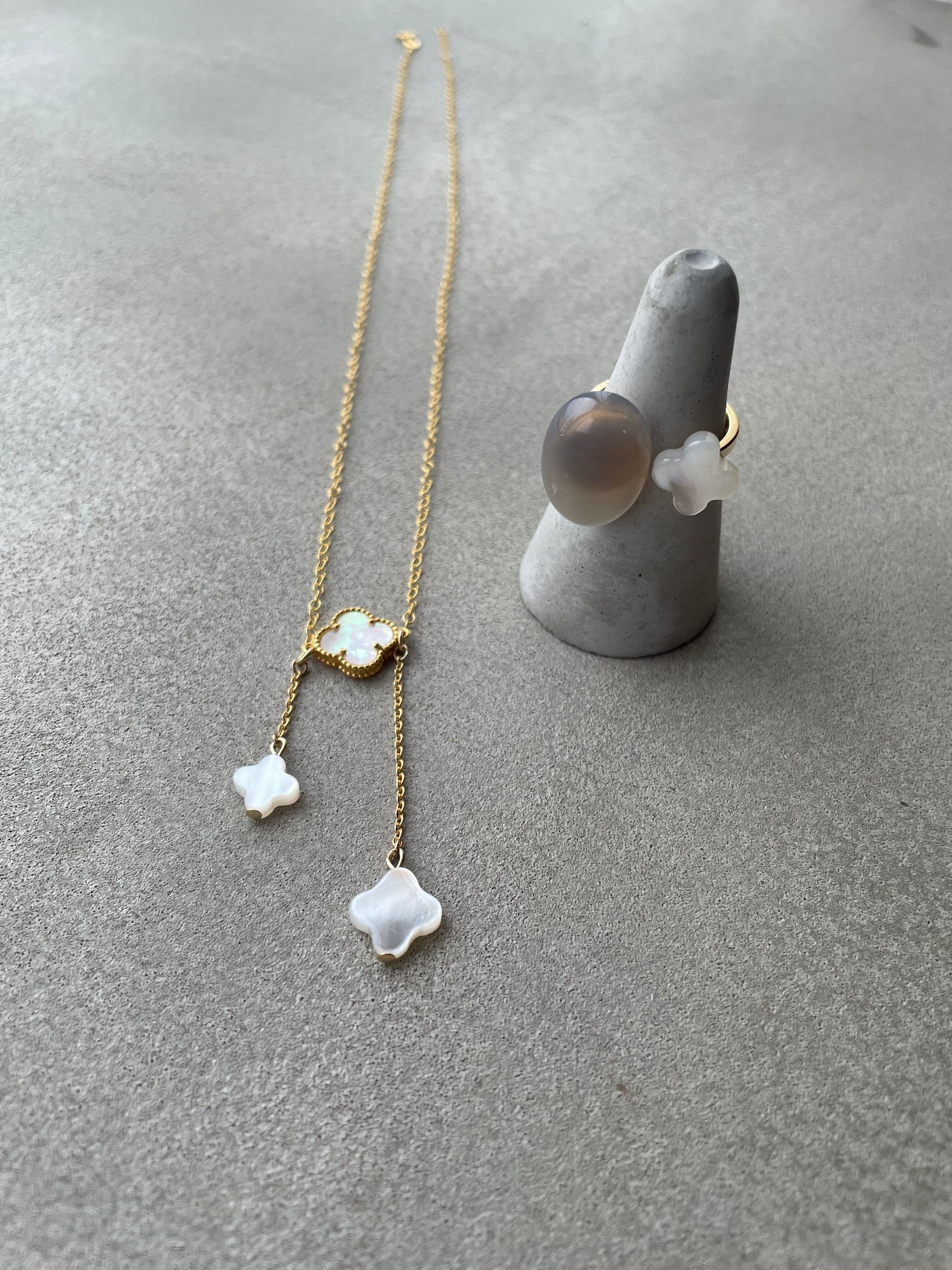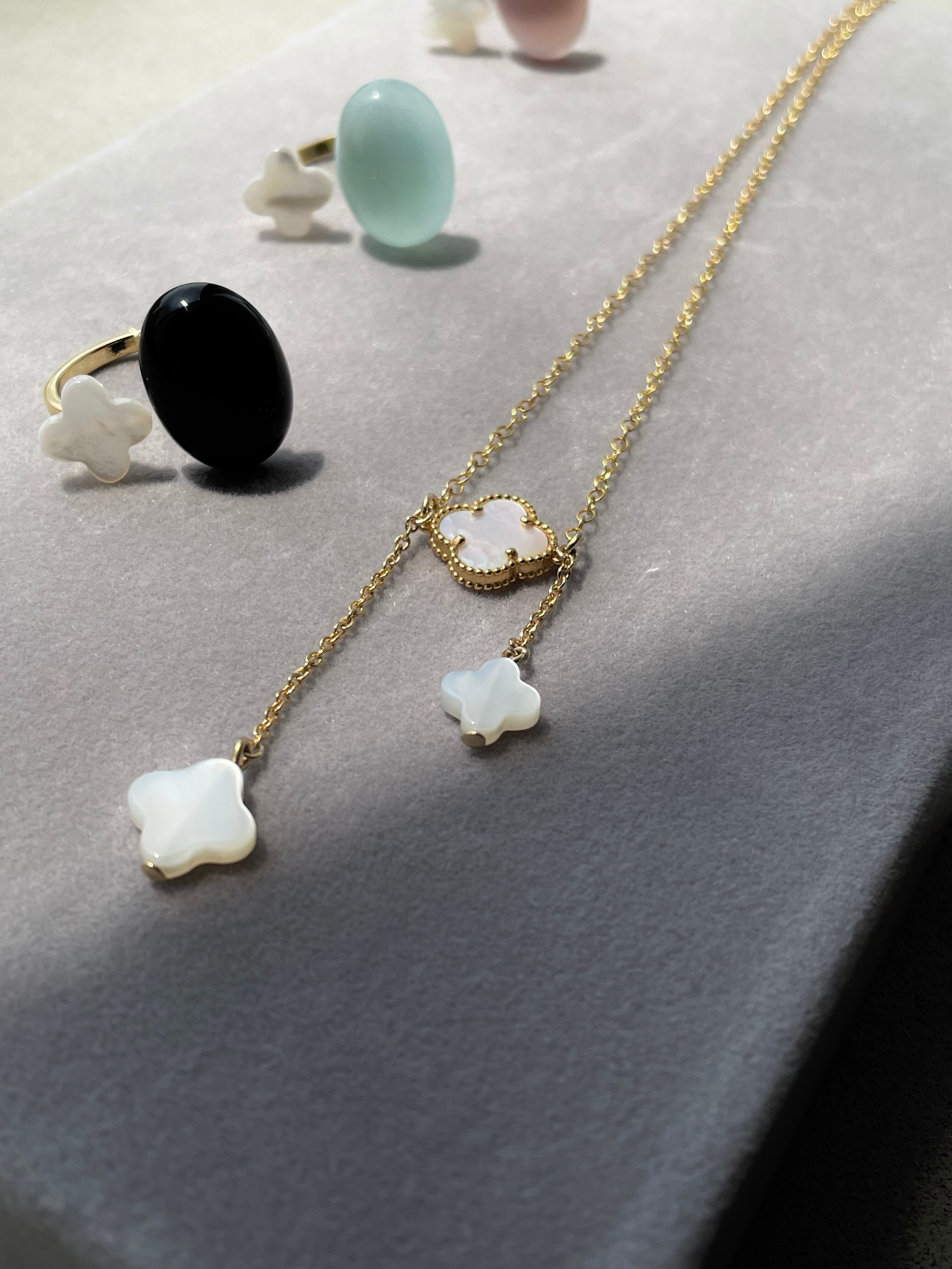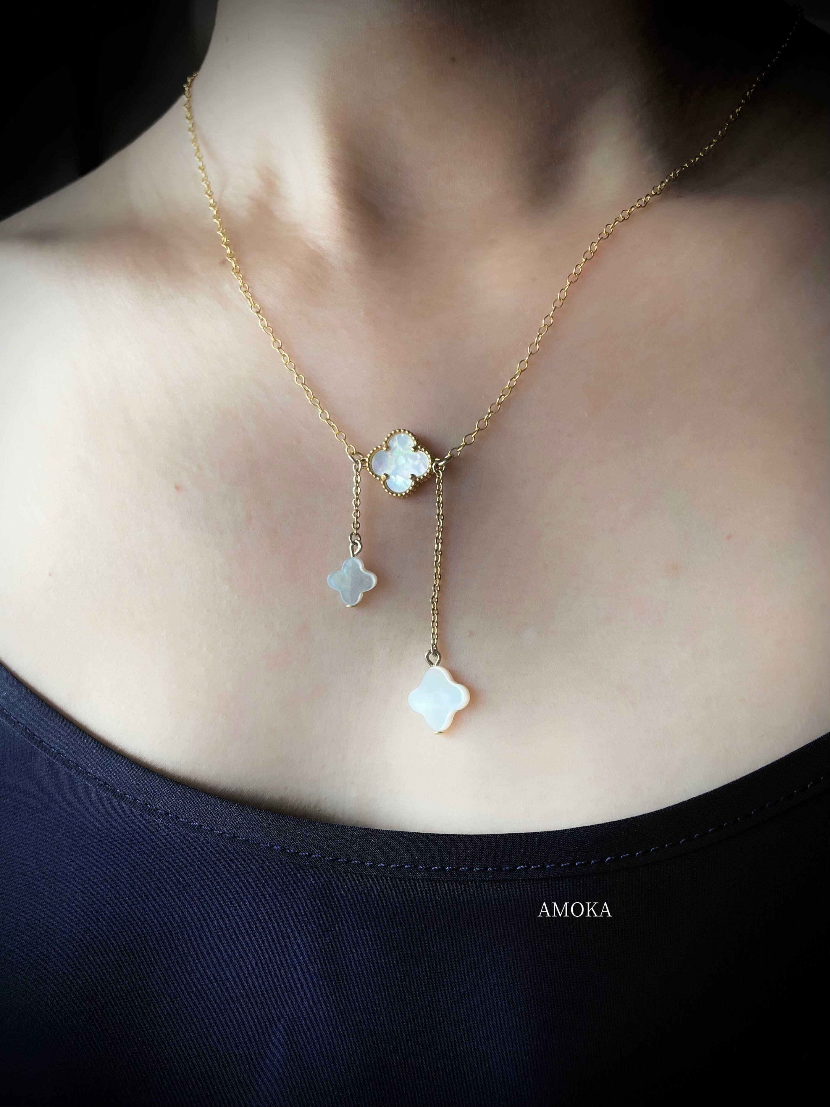 〈3つが可愛い〉照り艶triplets クローバーホワイトシェル ネックレス