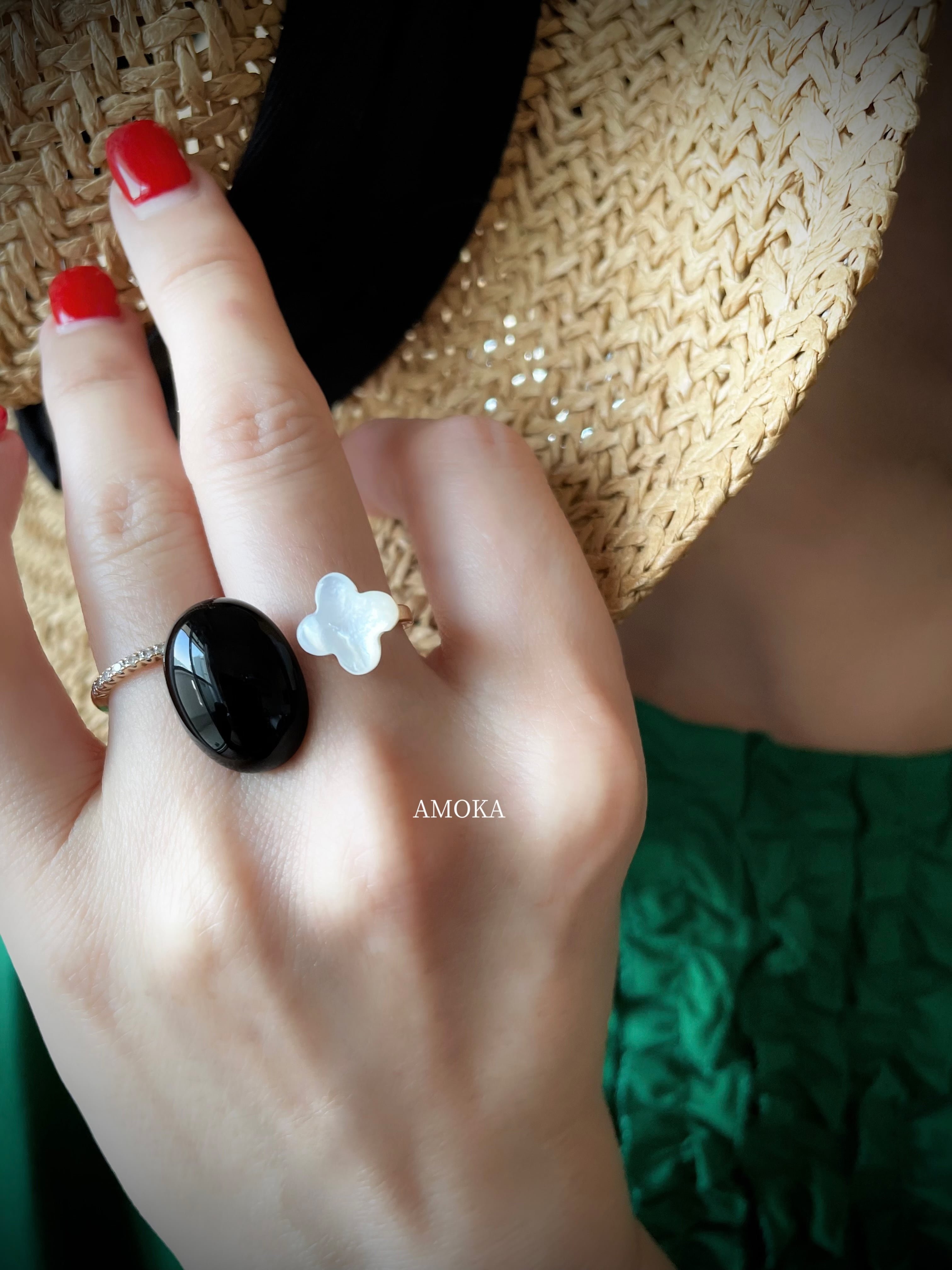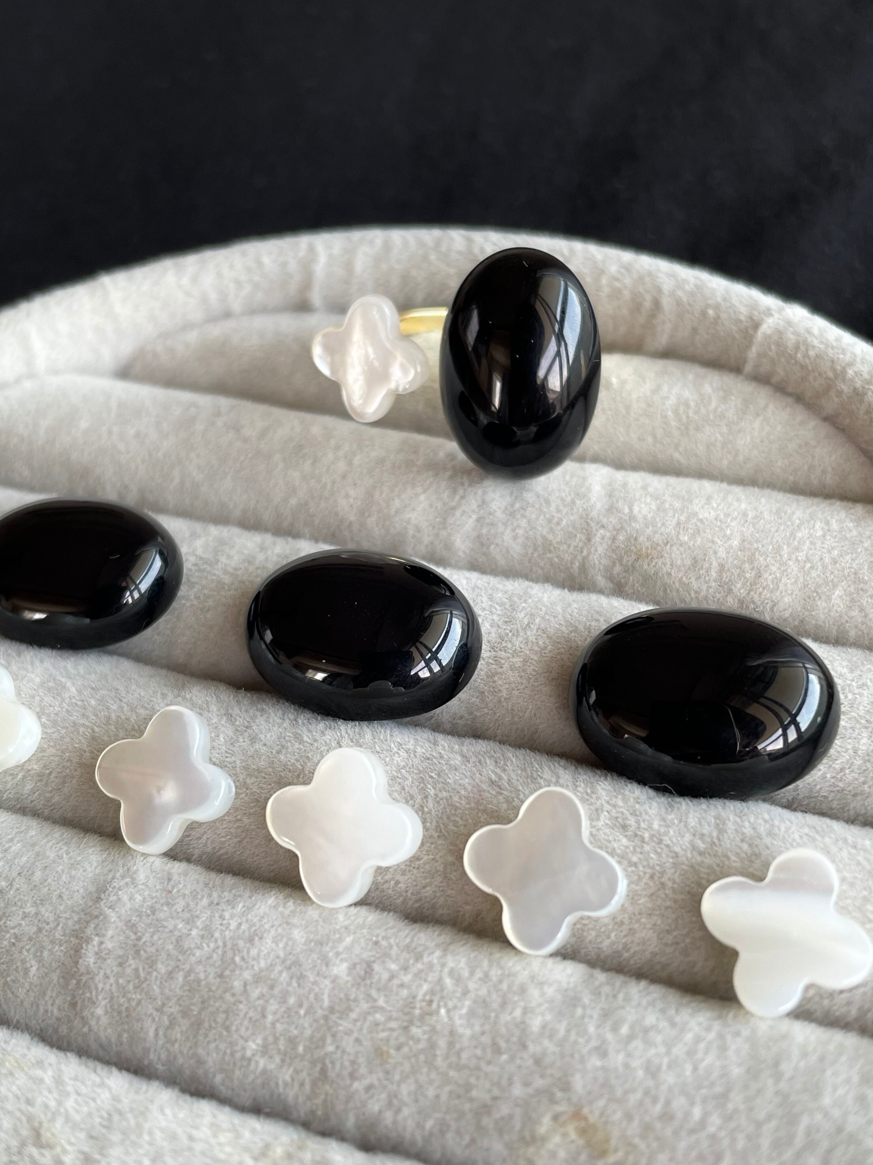 クローバーシェル×ブラックオニキスのフォークリングをお作りしました。