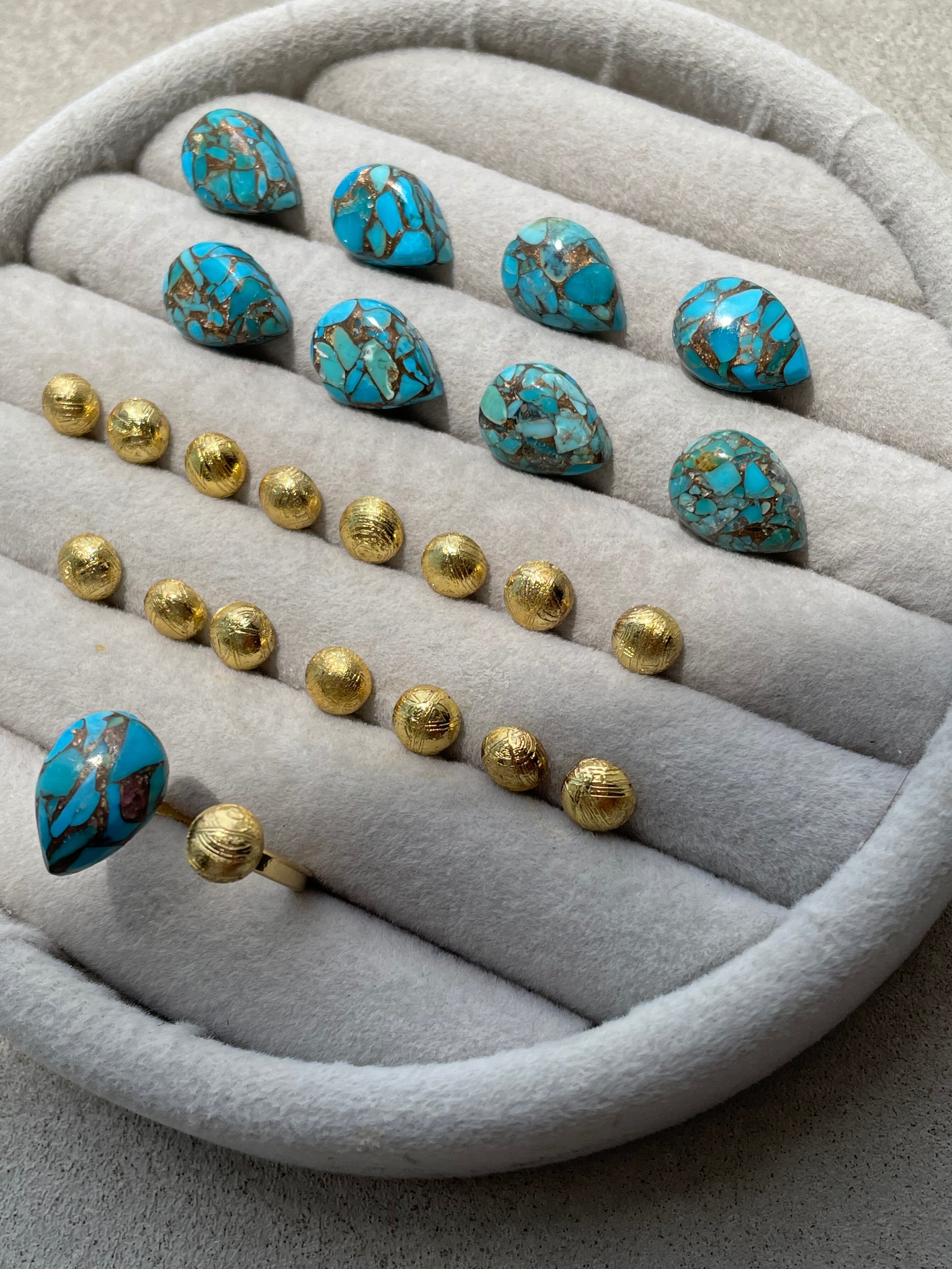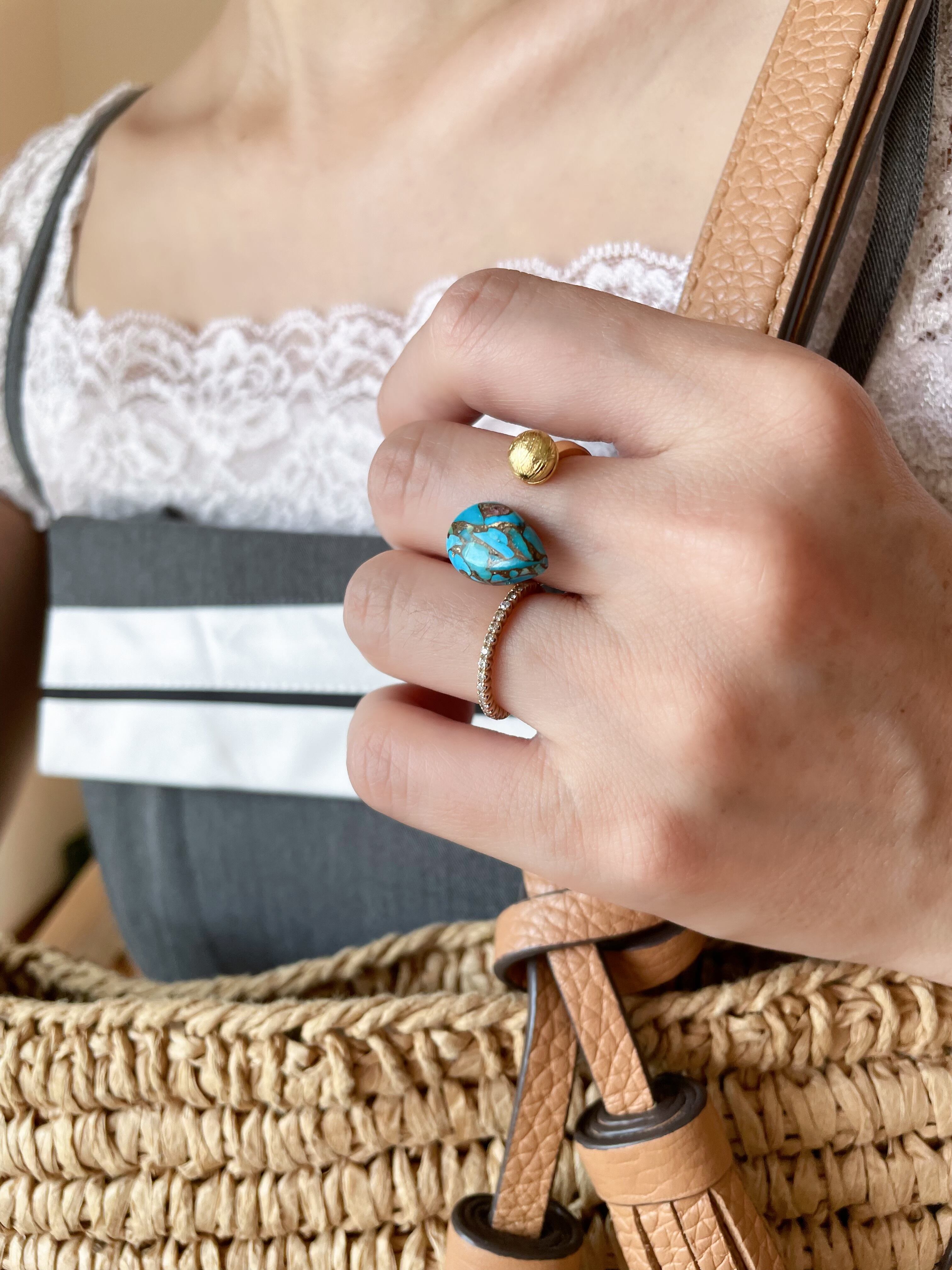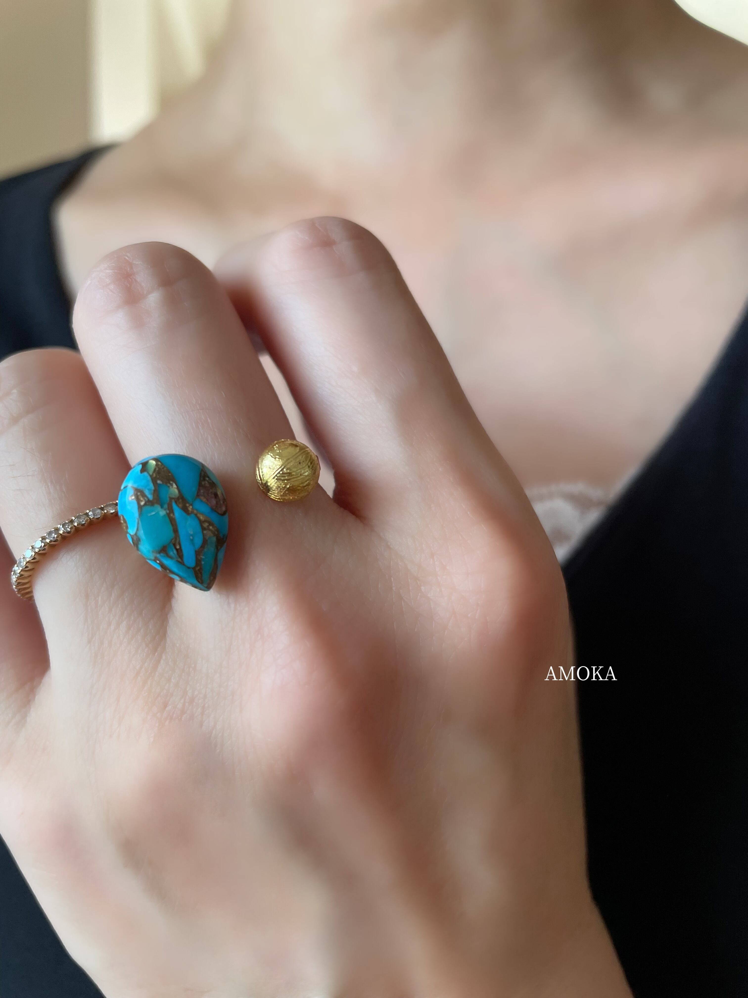 6ミリメテオライトにはゴールドメッキが施されており、ターコイズと合わせる事でとてもデザイン性の高い美しいリングになりました。