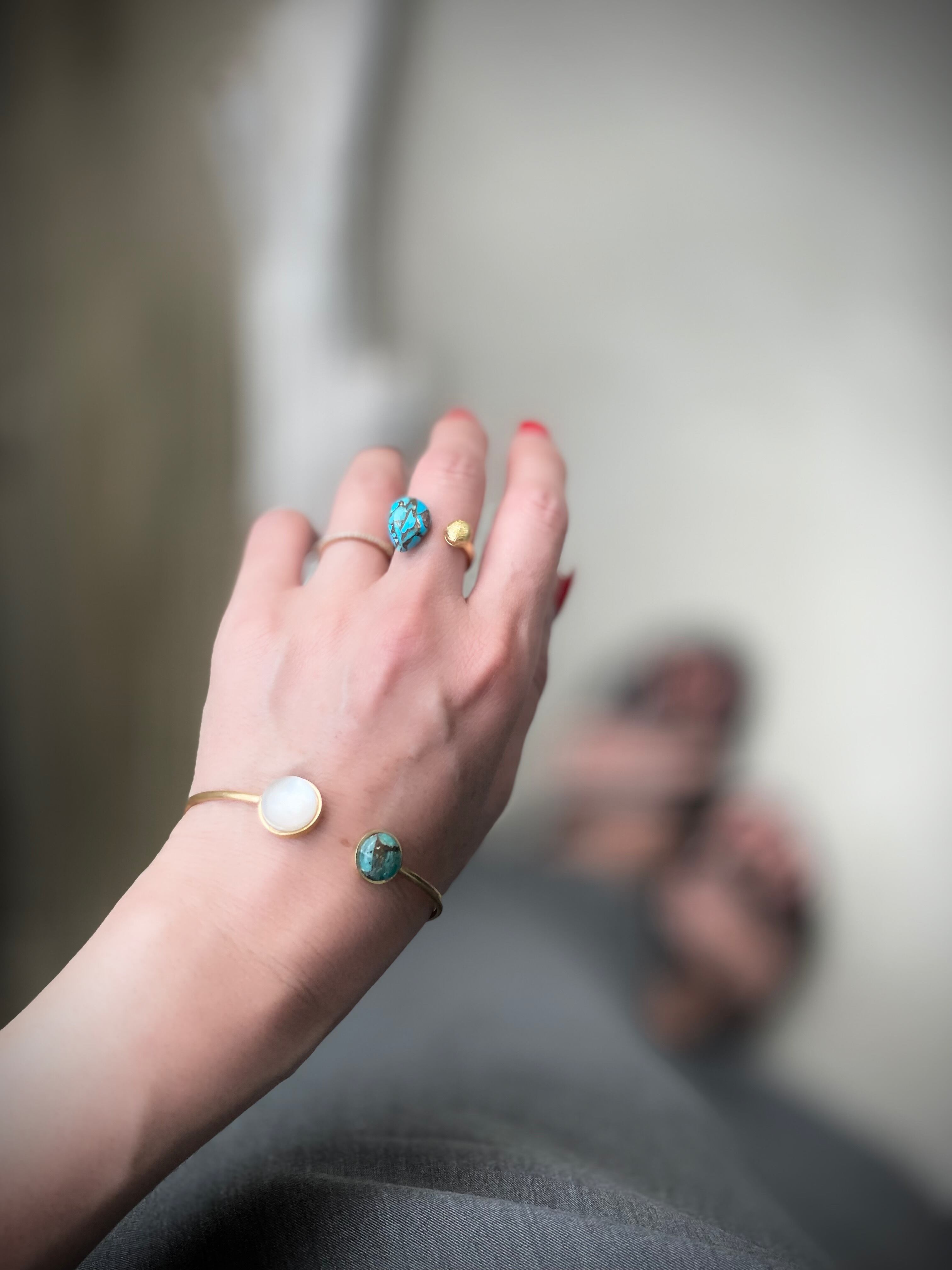 ブルーコッパーターコイズの一つ一つの模様は世界でただ一つ。その個性をご縁としてお迎えいただけたら大変嬉しく思います。