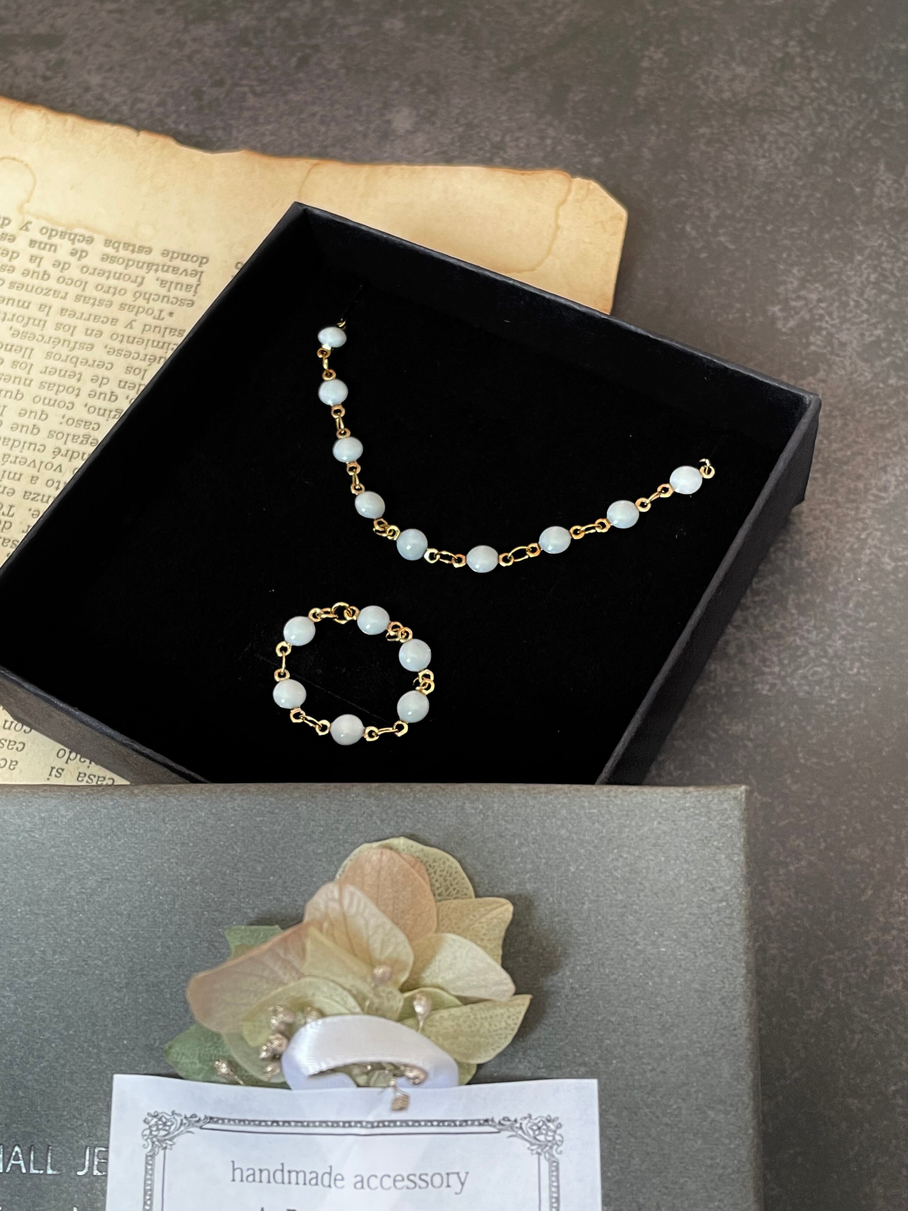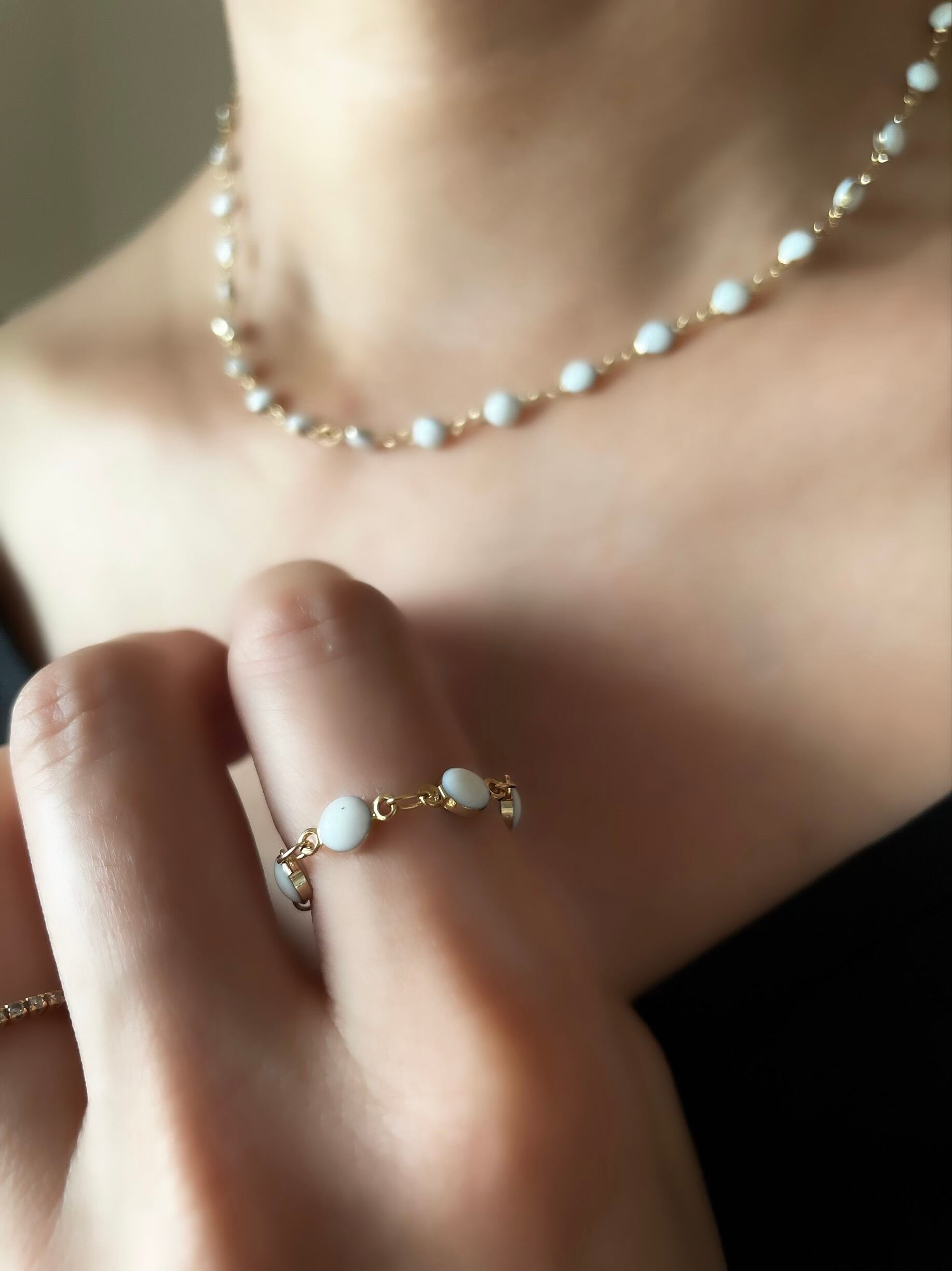 ✴︎デザインチェーンネックレス×お揃いリングのセット販売になります。大きすぎ小さすぎないラウンドエポが胸元と指先を可憐に上品に飾ってくれます。