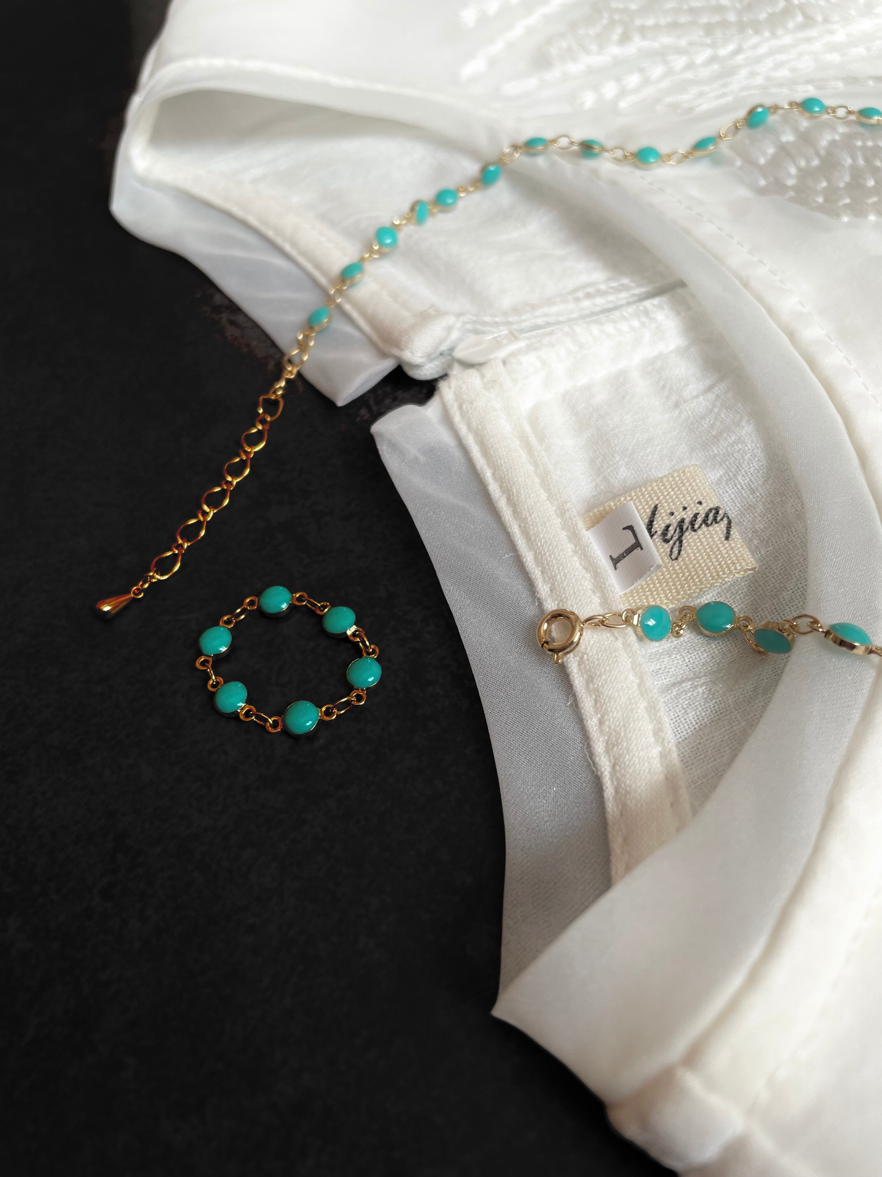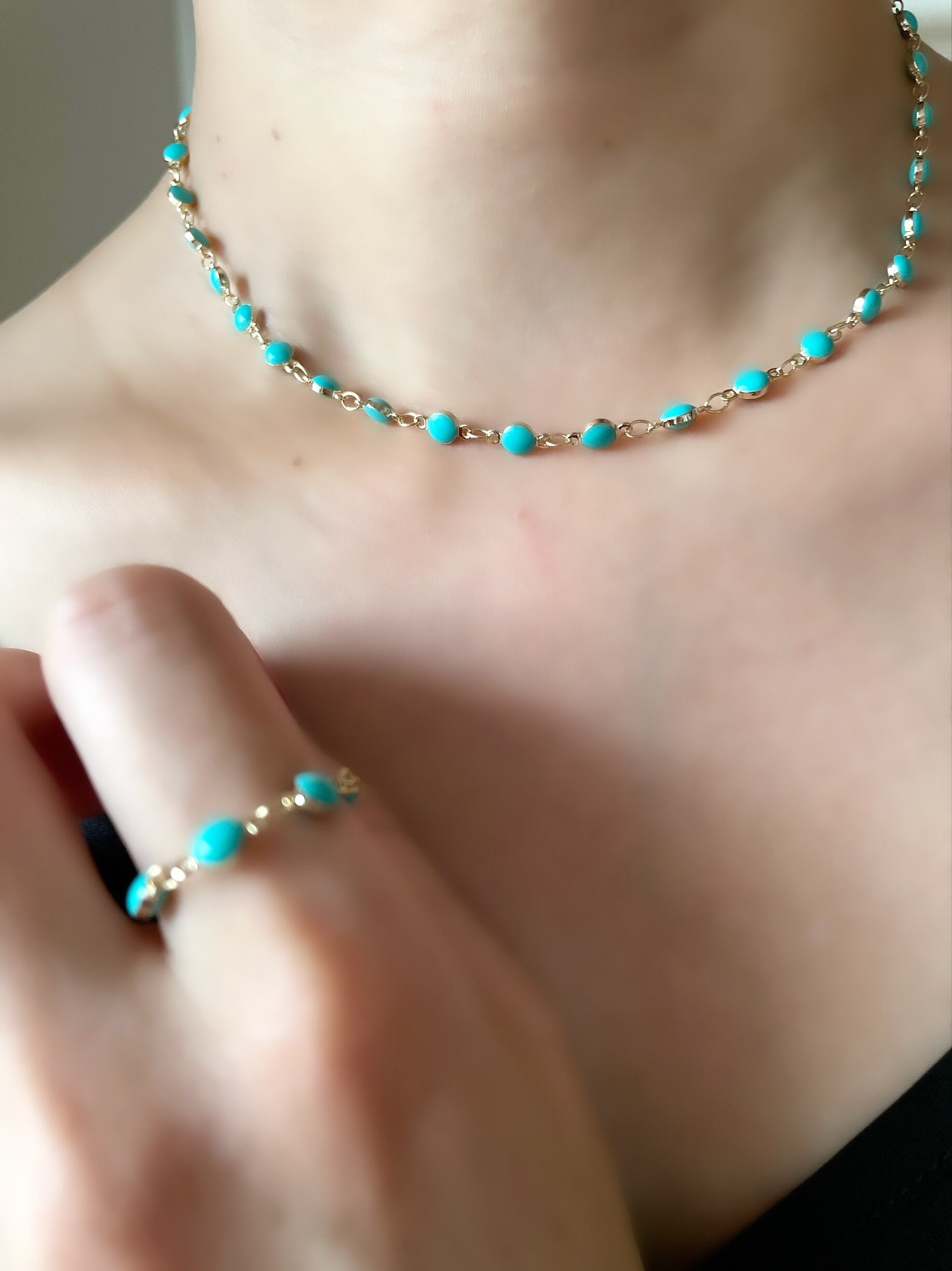 ✴︎デザインチェーンネックレス×お揃いリングのセット販売になります。大きすぎ小さすぎないラウンドエポが胸元と指先を可憐に上品に飾ってくれます。