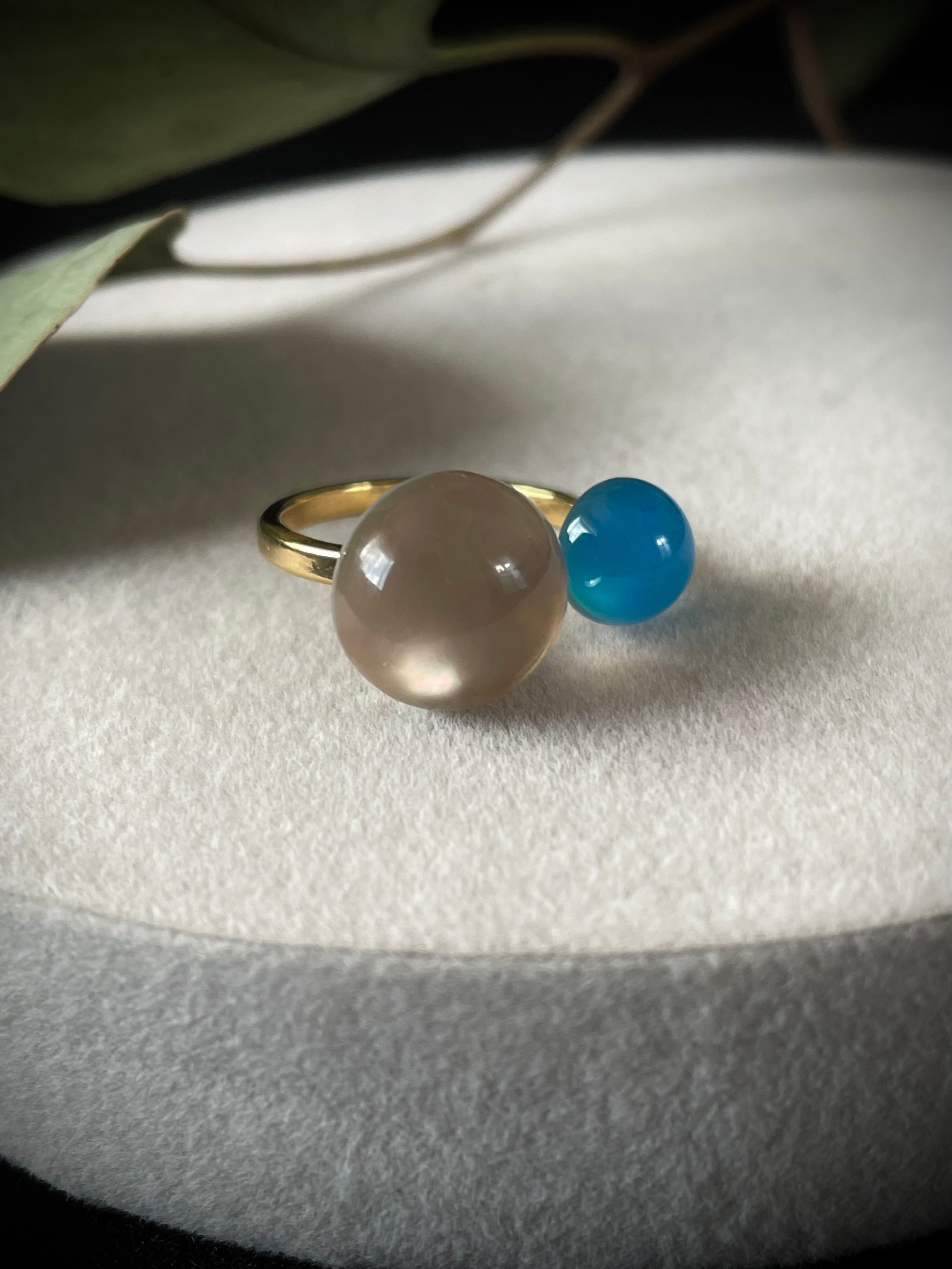ライトブルーカルセドニー×シェルのフォークリングをおつくりしました。