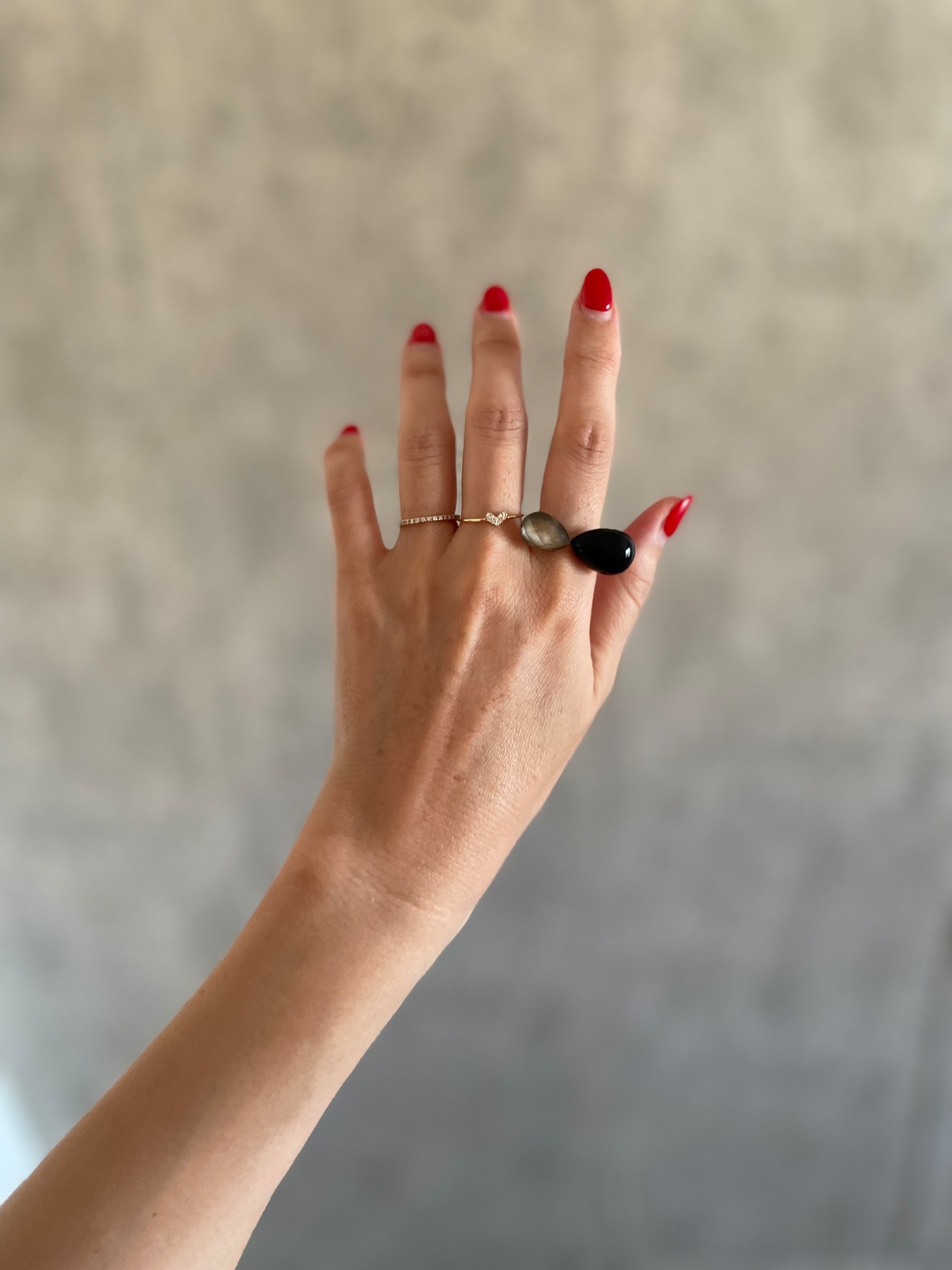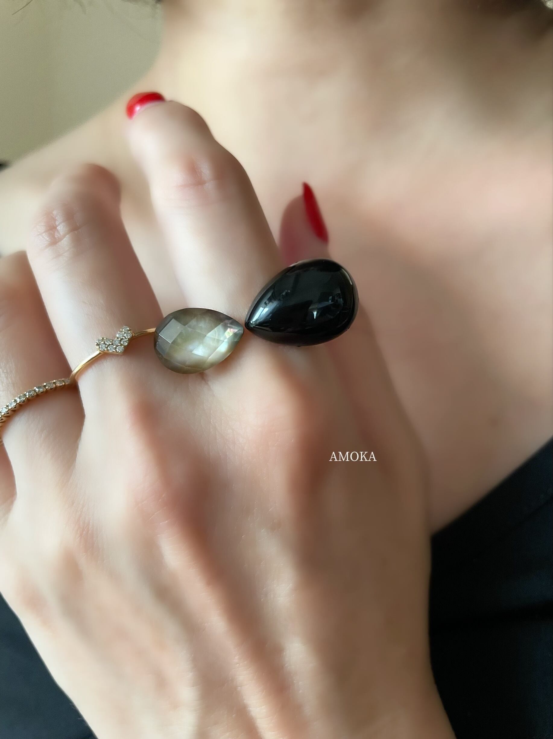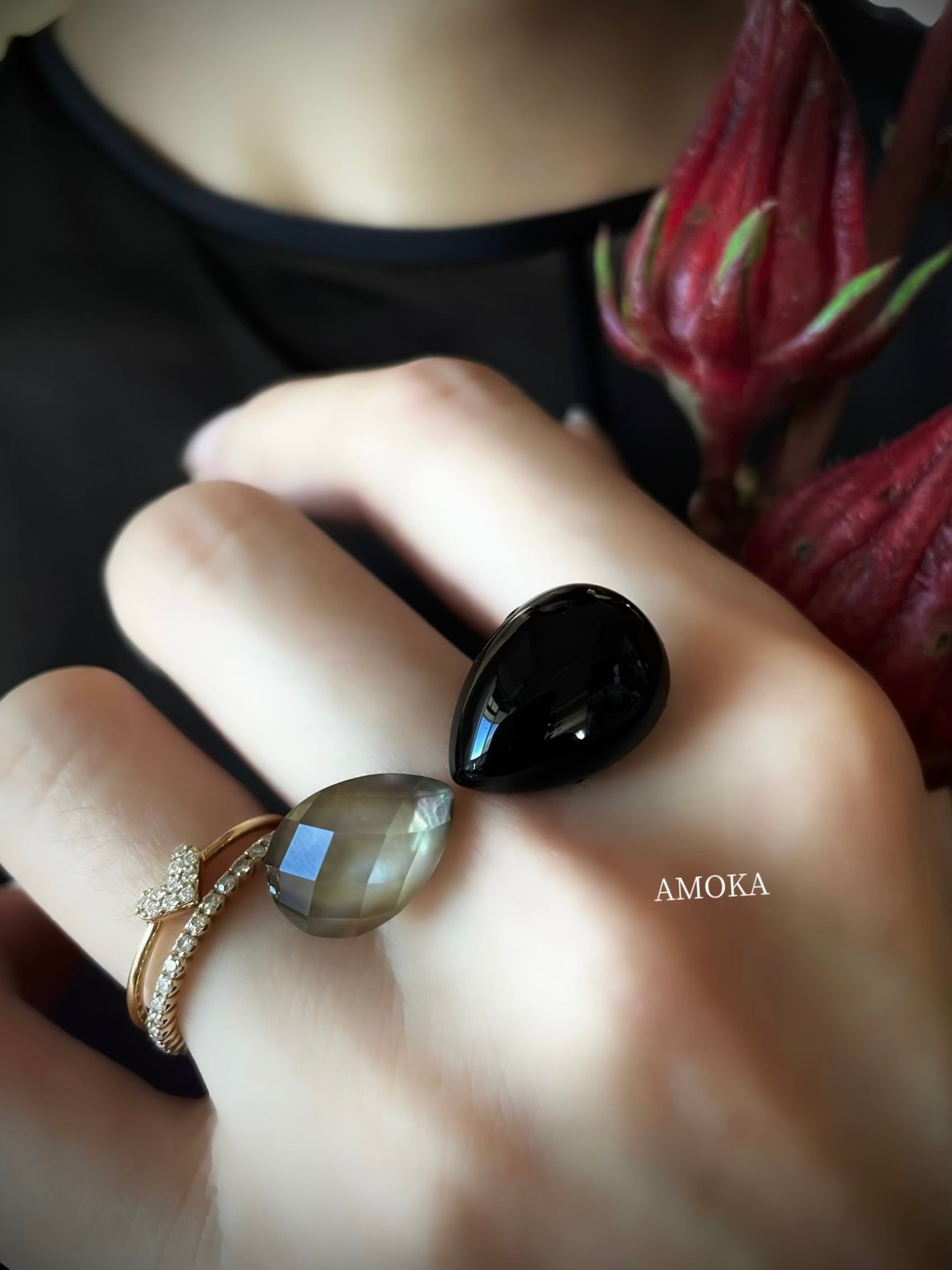 ブラックオニキス×(ブラックシェル×クリスタル)のフォークリングをお作りしました。