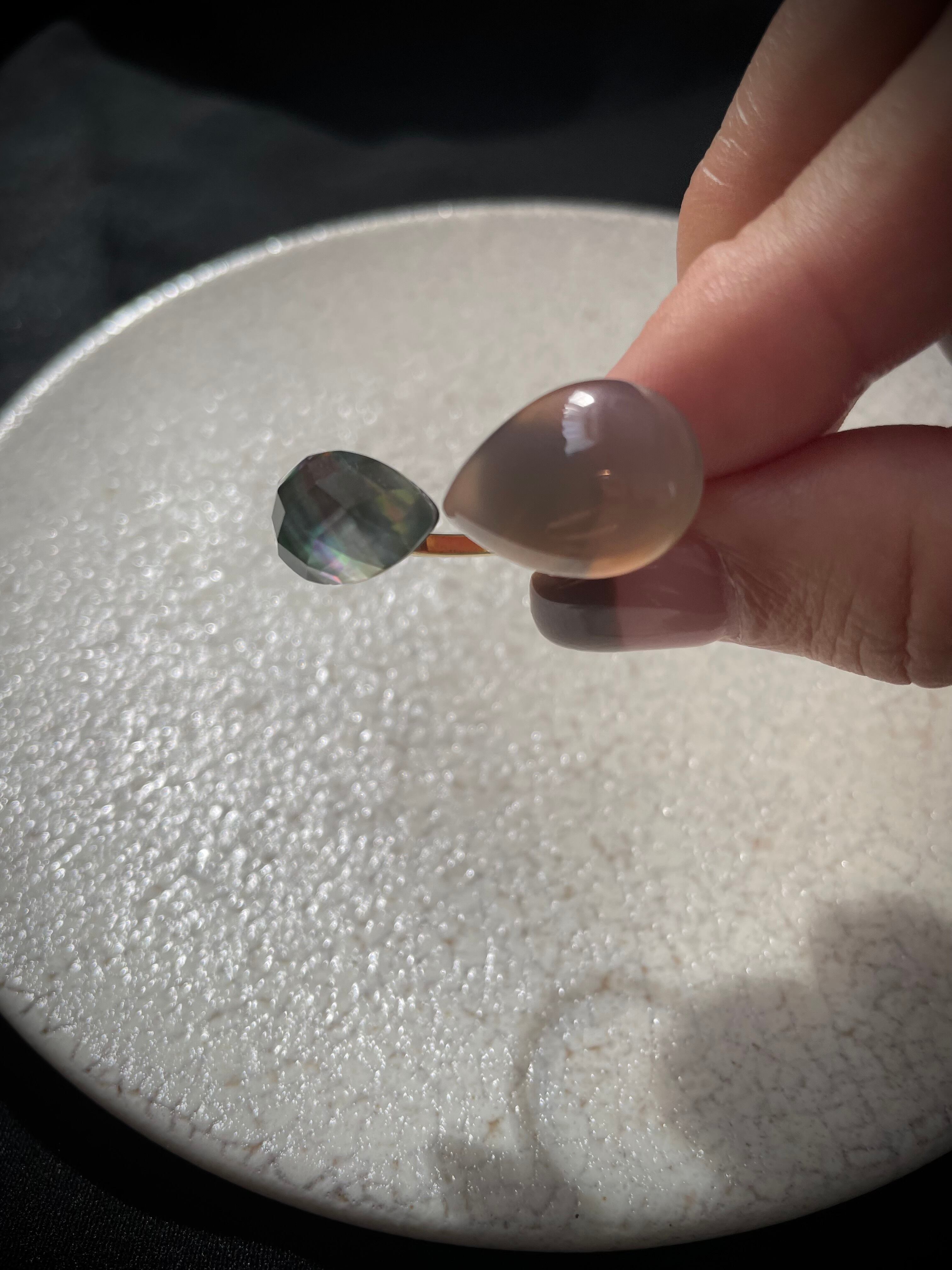 グレーオニキス×(ブラックシェル×クリスタル)のフォークリングをお作りしました。