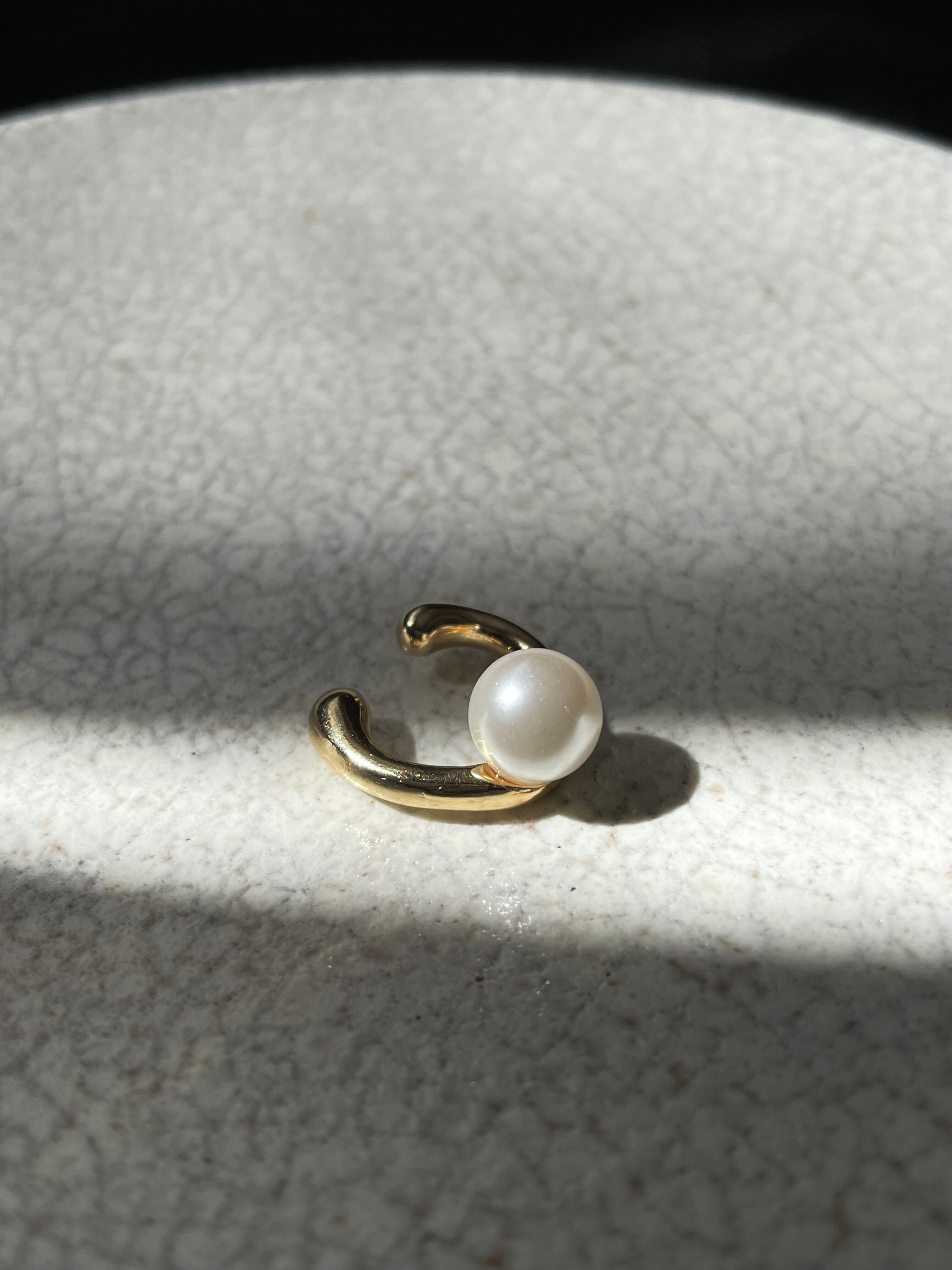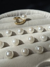 8ミリのマザーオブパールイヤーカフです。コロンとした丸みのあるフォルムのイヤーカフにマザーオブパールの白がとても映えるお品です。
