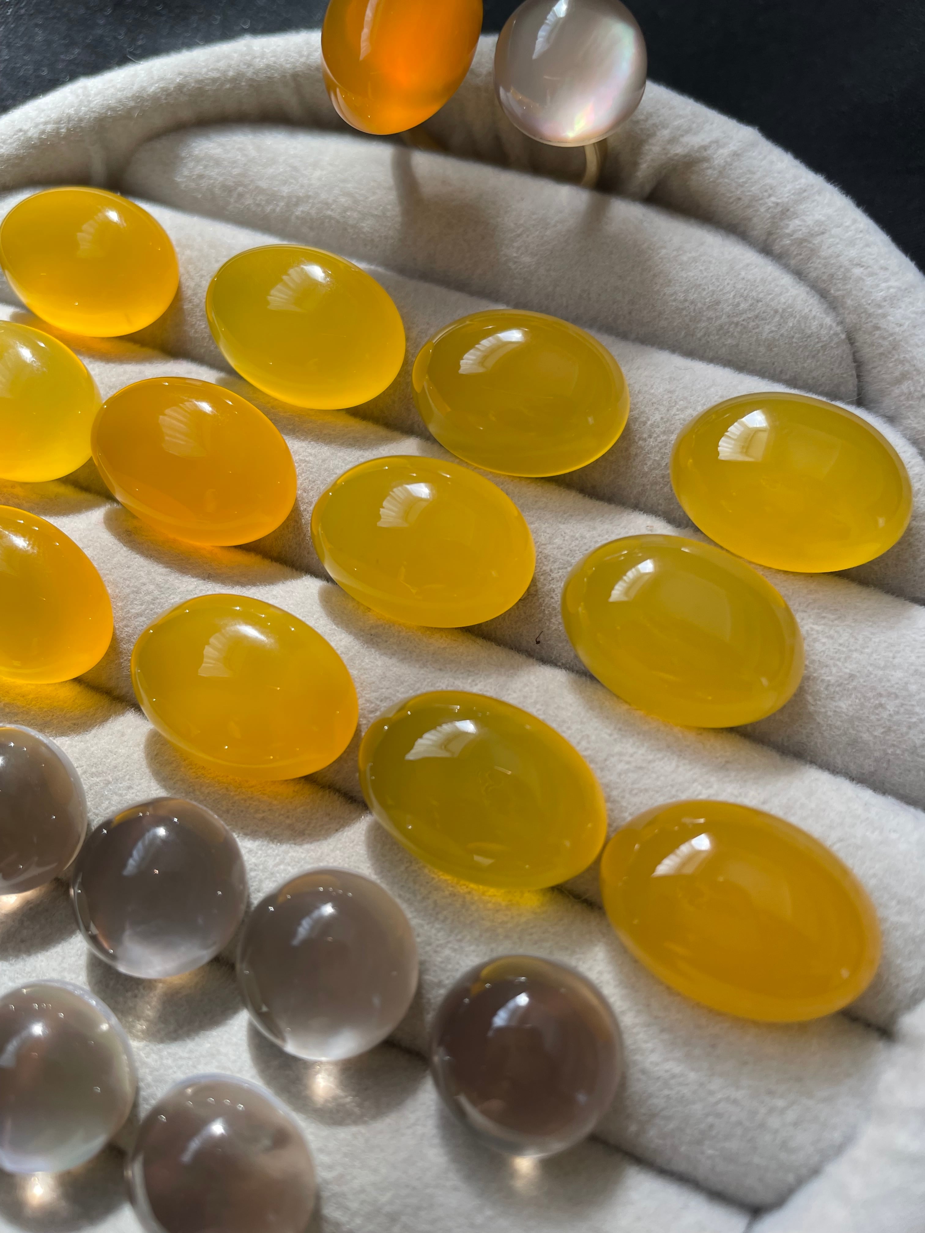 秋コーデのポイントにも◎。イエローカルセドニーの透明感×シェルの艶感をお楽しみください。