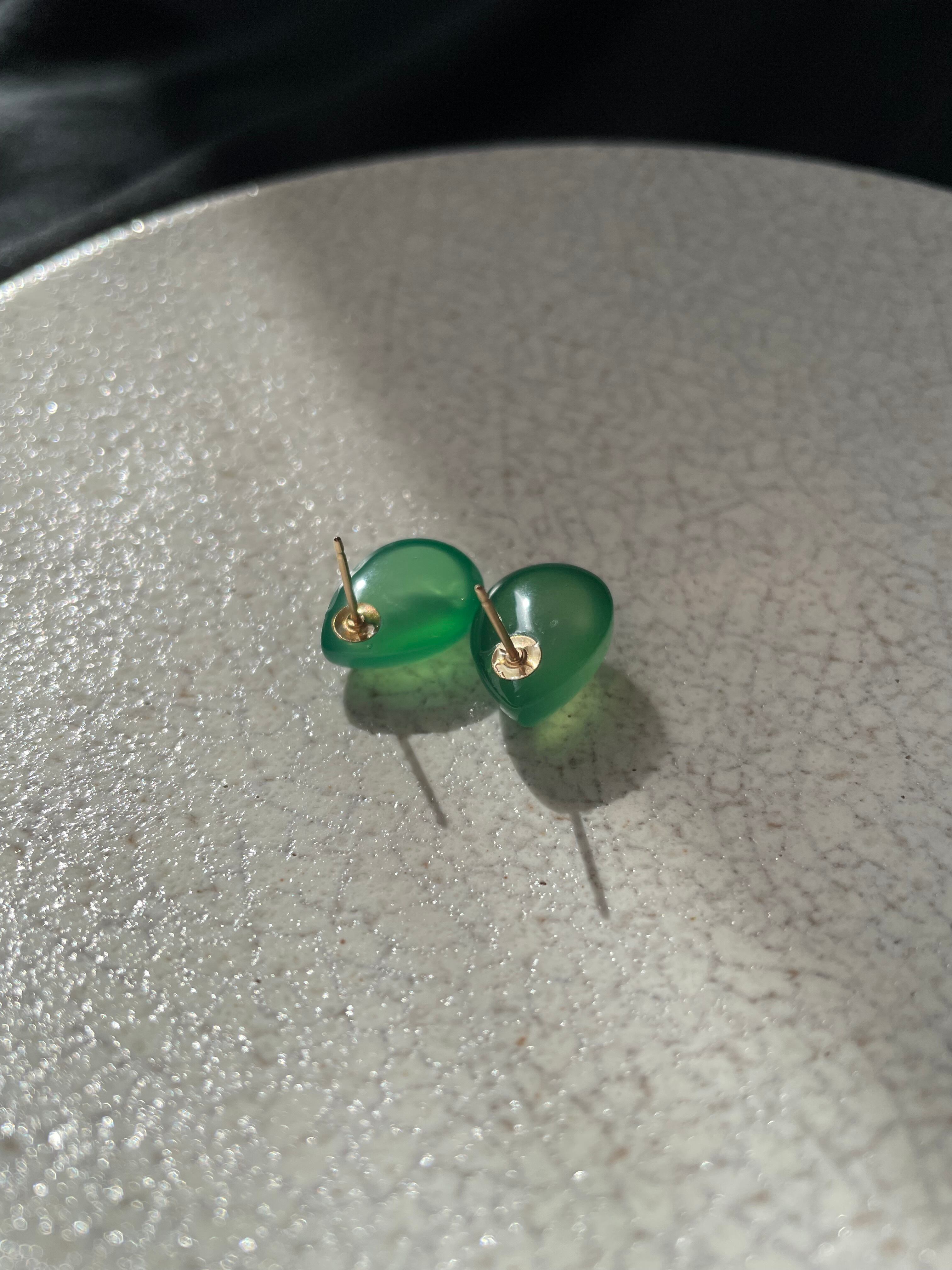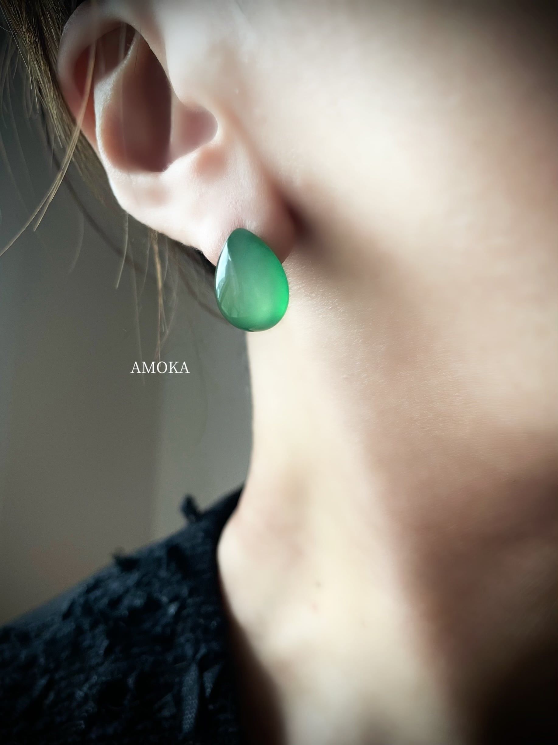 深みのあるグリーンが耳元を彩る、シンプルで上品な一点。