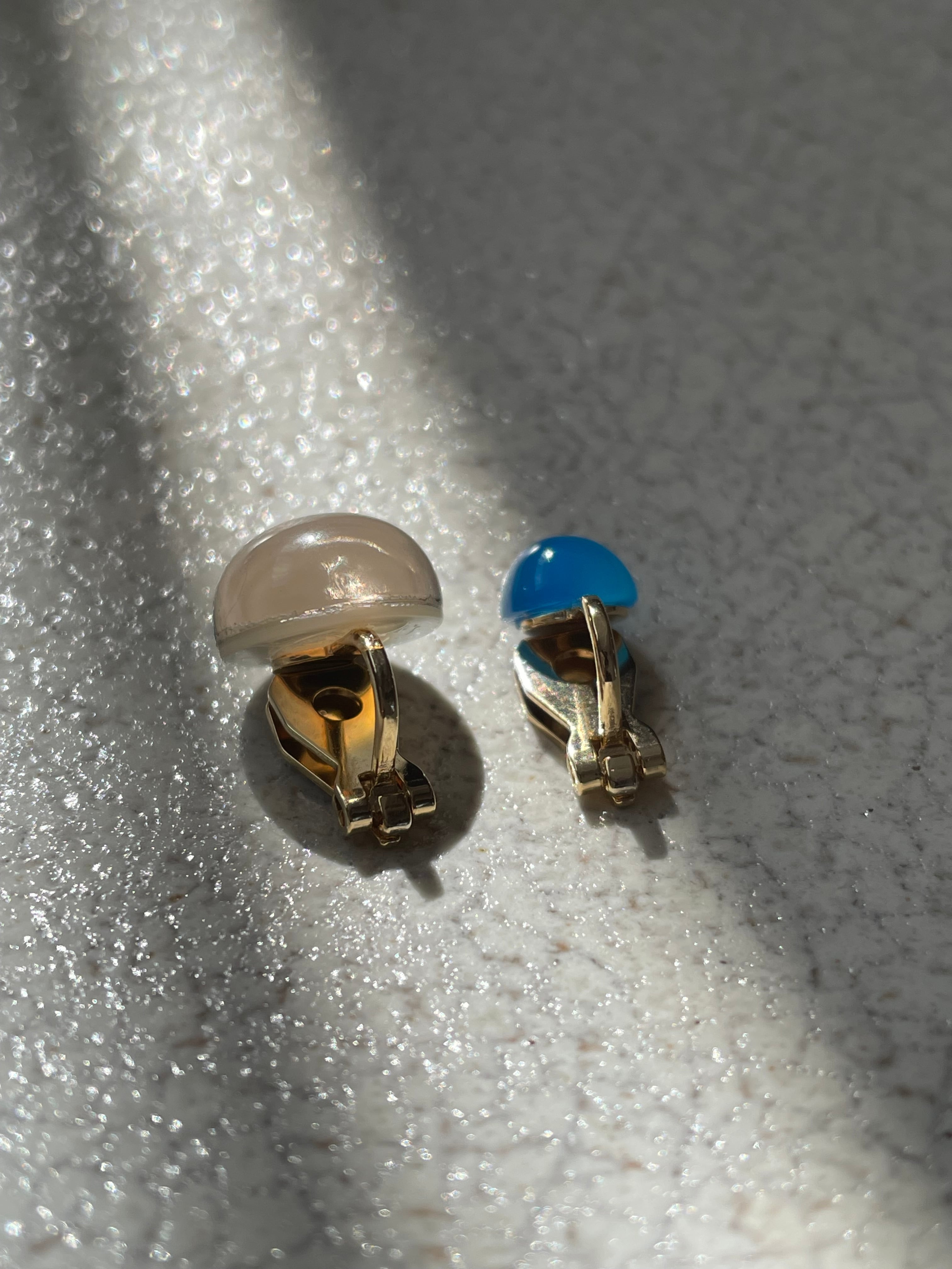 12ミリのシェル×8ミリのライトブルーカルセドニーのイヤリングのお得な2個セット販売のお品です。