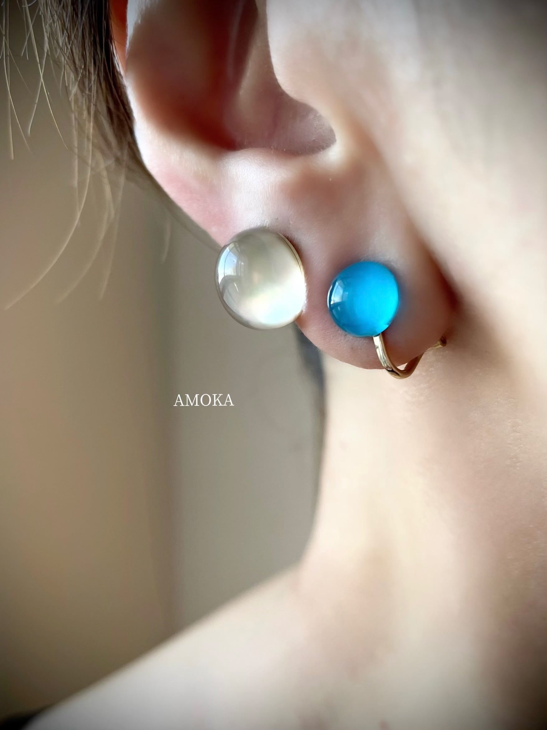 片耳に2個づけでも、両耳にアシンメトリーで色違いでもお好みに合わせてその日の気分や服装に合わせてコーディネートをお楽しみください。