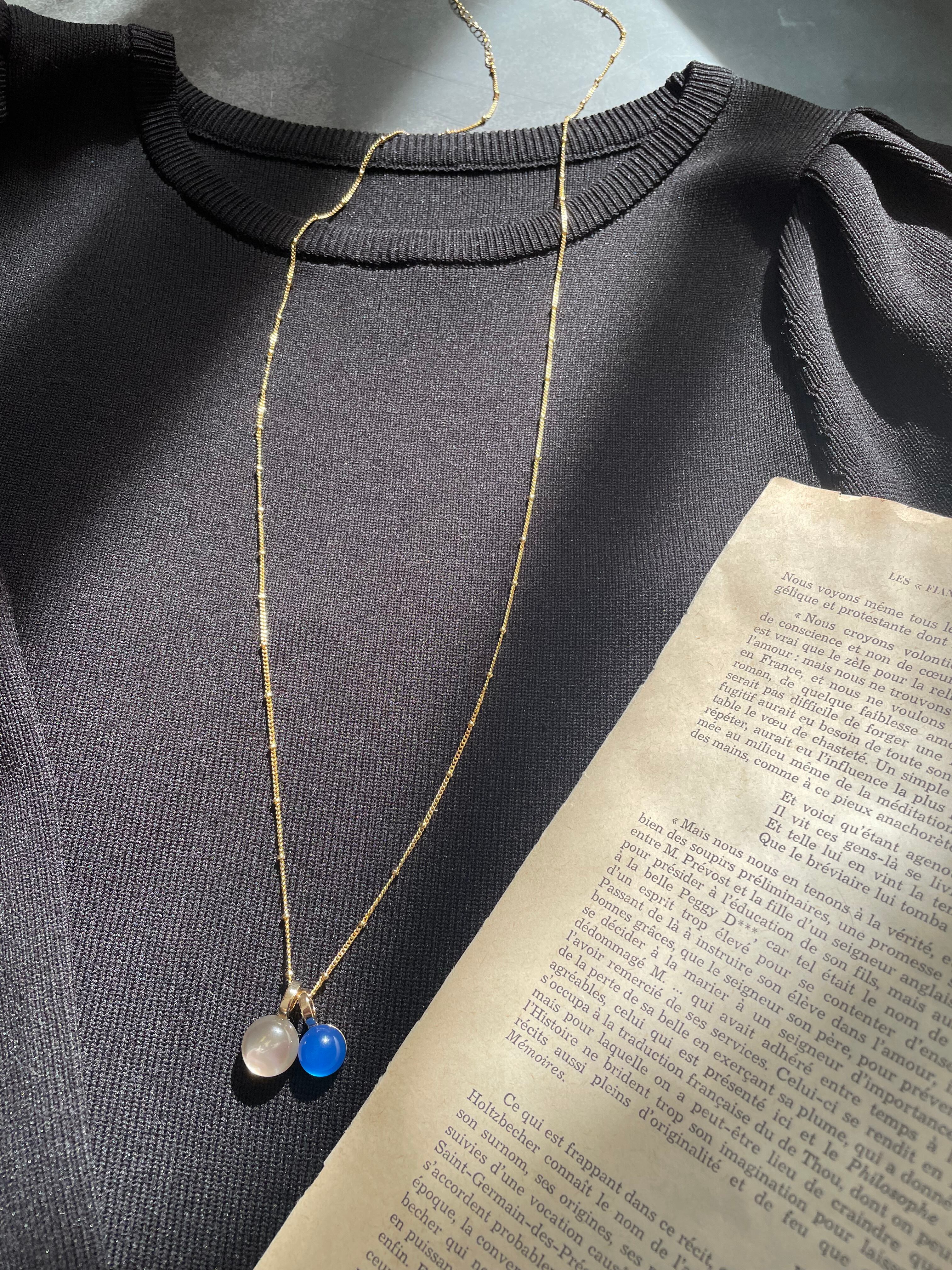 ◉春夏は14kgfネックレスを素肌に。秋冬は75㌢デザインネックレスを頭からすっぽりと。短長どちらにも対応できる喜びも叶えました。