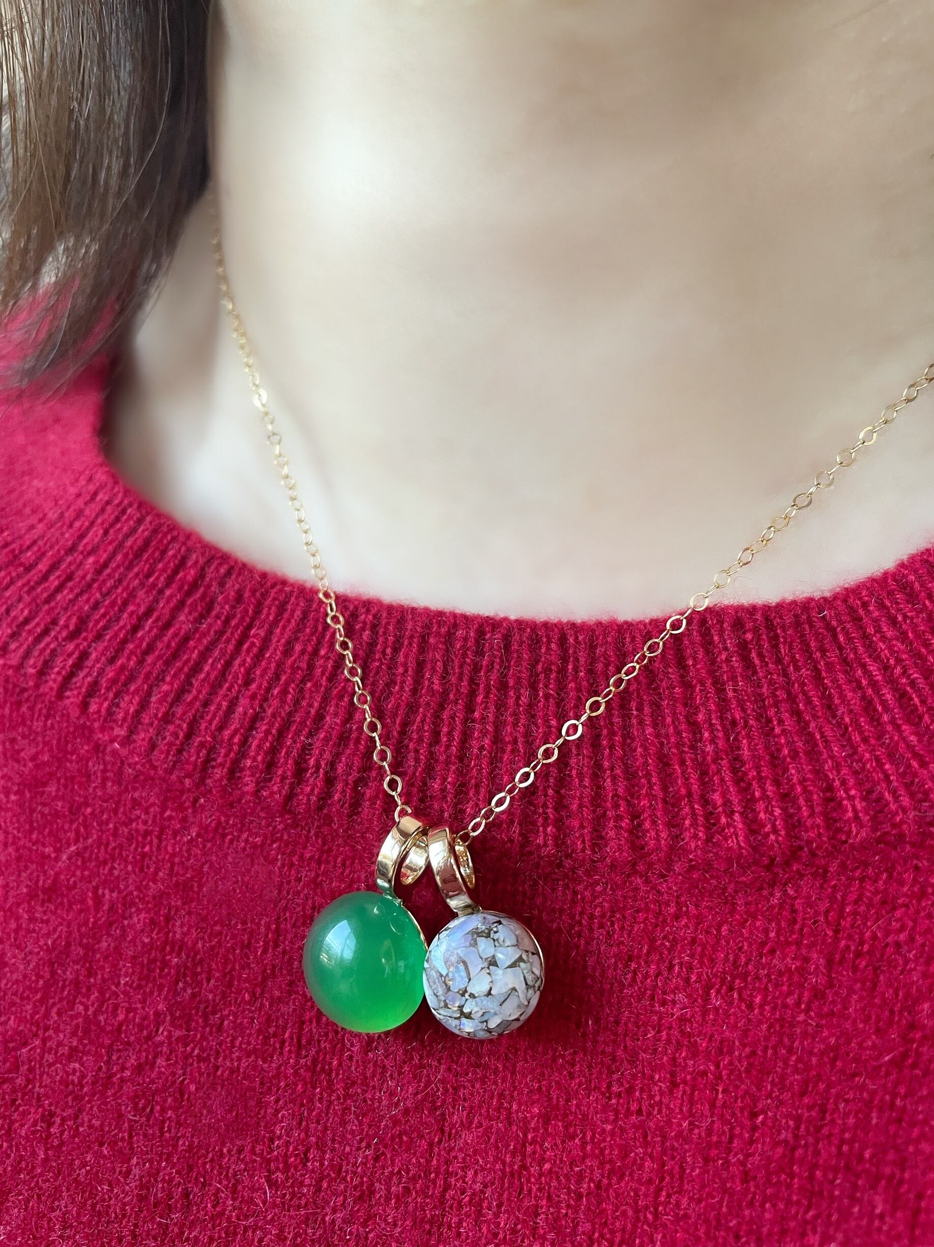 深いグリーンが魅力のグリーンオニキスと、個性豊かな模様と魅力を放つコッパーオパールを贅沢に組み合わせた4wayネックレス。14kgfチェーンの高品質な輝きと繊細なデザインが、どんなシーンにも寄り添います。デイリーユースはもちろん、大切な方へのギフトや、自分へのご褒美にもおすすめです。